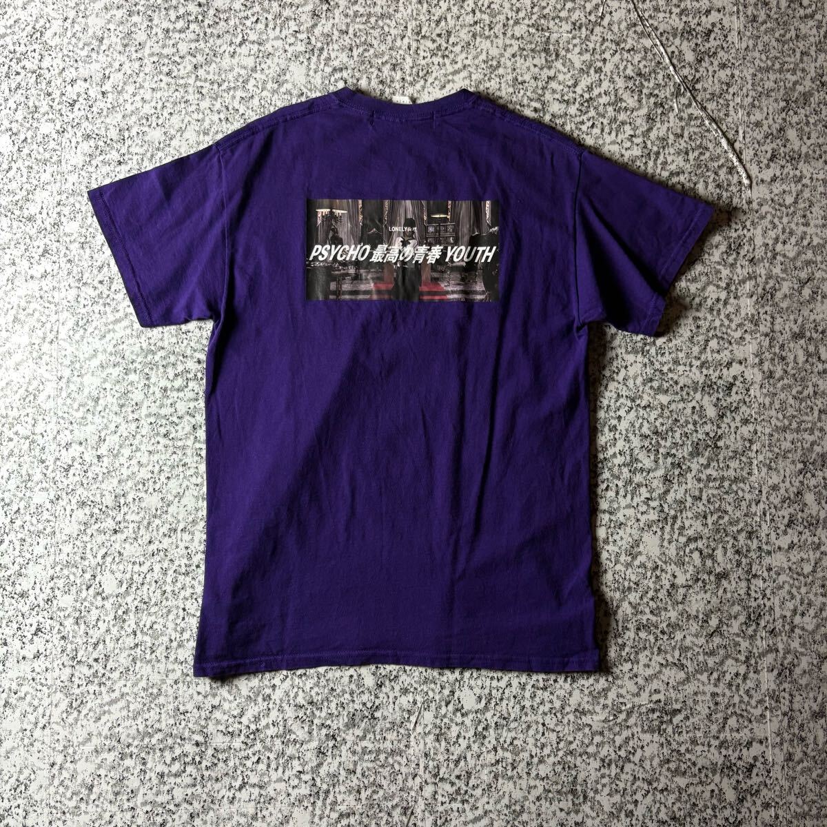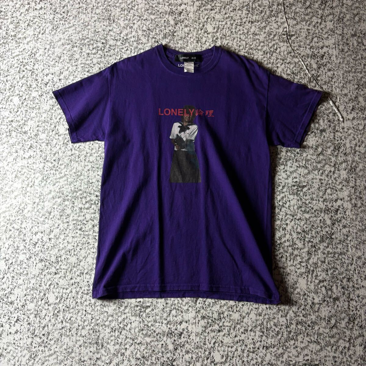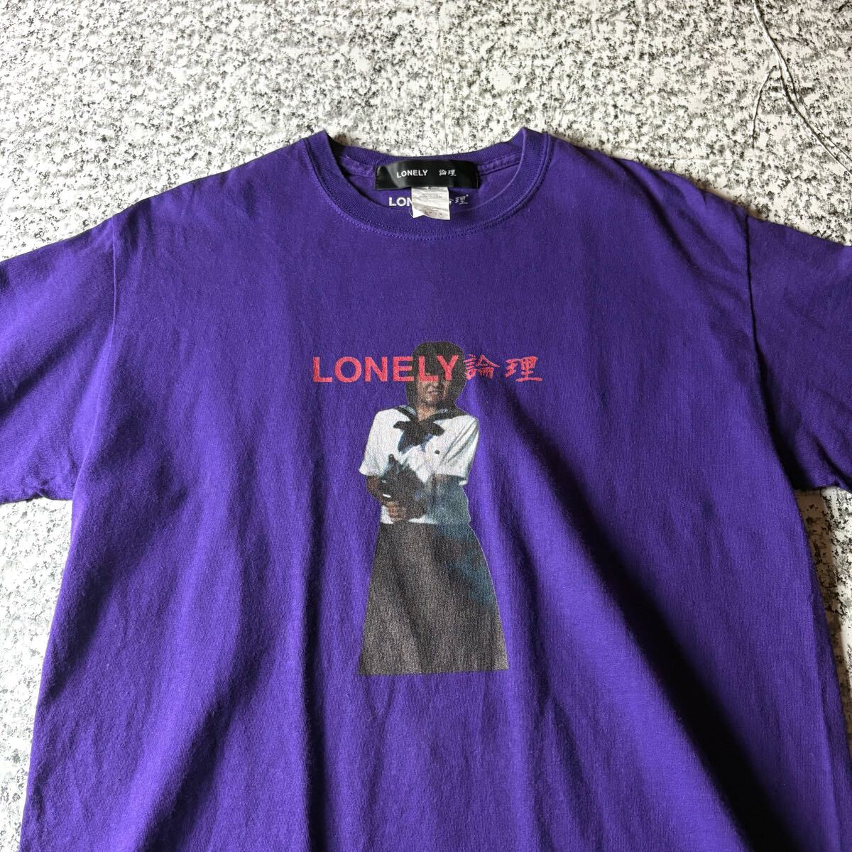 【ストリート】LONELY論理 セーラー服と機関銃 プリントTシャツ Mサイズ パープル 古着 薬師丸ひろ子  半袖Tシャツ