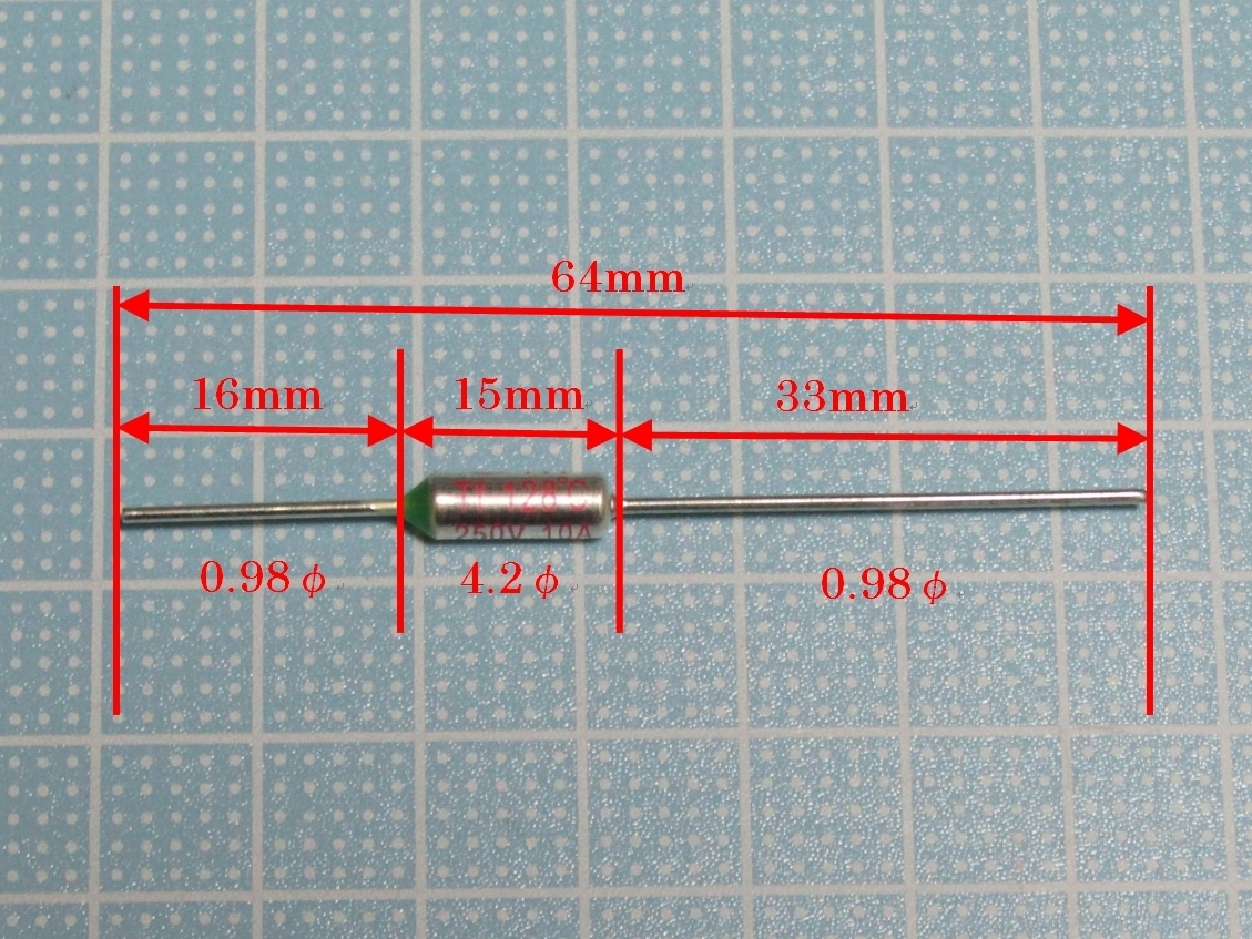 サーマルヒューズ本体は、メタル製でリードの長い方と同電位になります。絶縁、高温対策にはご注意下さい。
