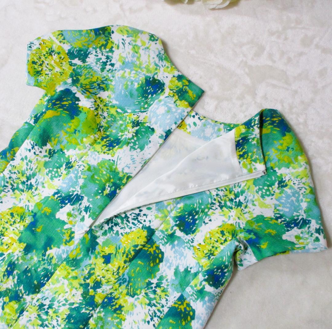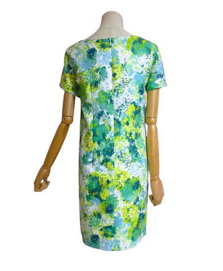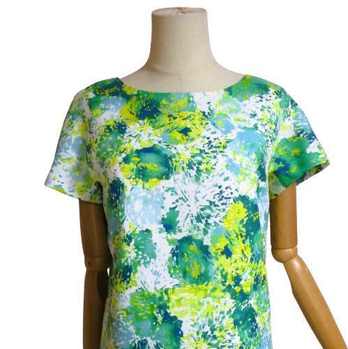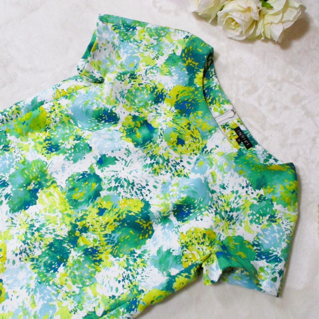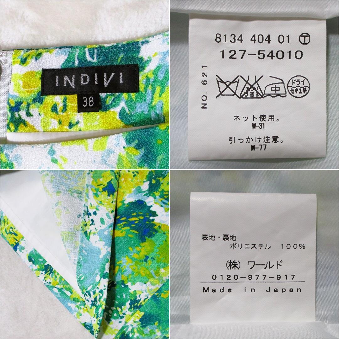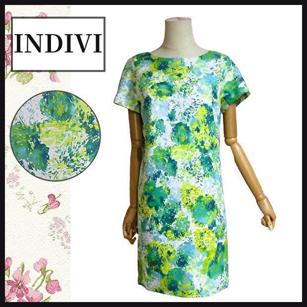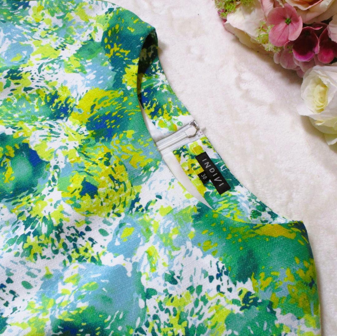 【インディヴィ】サマーワンピース グリーン系 総柄 38 膝丈リゾート デイリー INDIVI リゾート 旅行 シンプル M 匿名発送