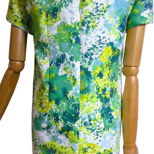 インディヴィ INDIVIの グリーン イエロー 白を基調とした 夏にこそお召しいただきたい総柄のワンピース