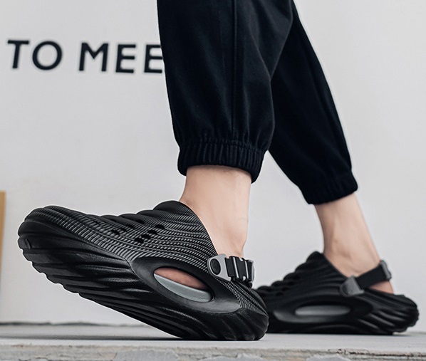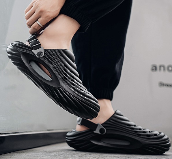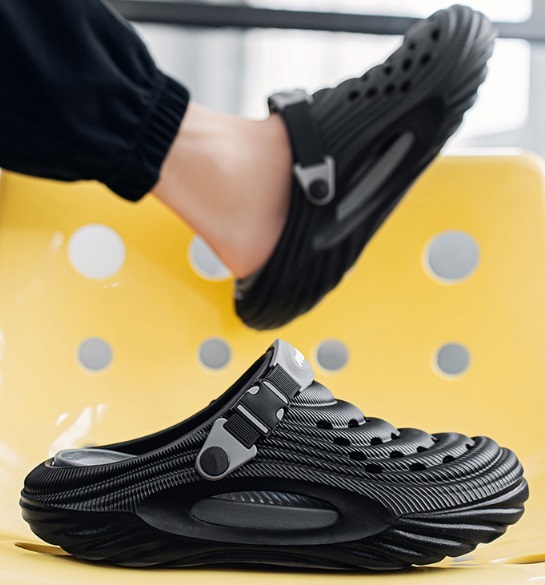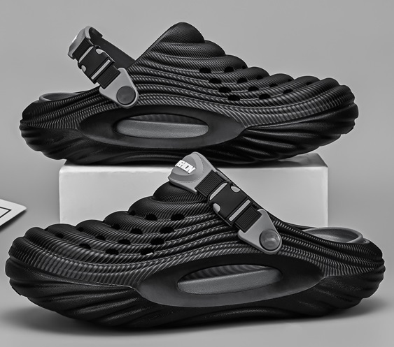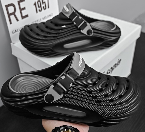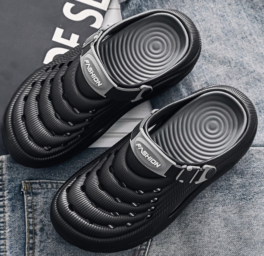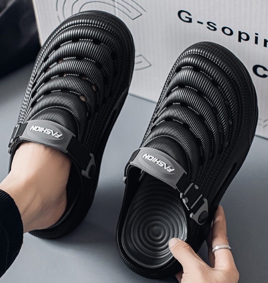 夏新品 2waysオシャレスリッパ メンズ ビーチ リゾートサンダル つま先保護 防滑 通気 厚底 黒/26-26.5cm