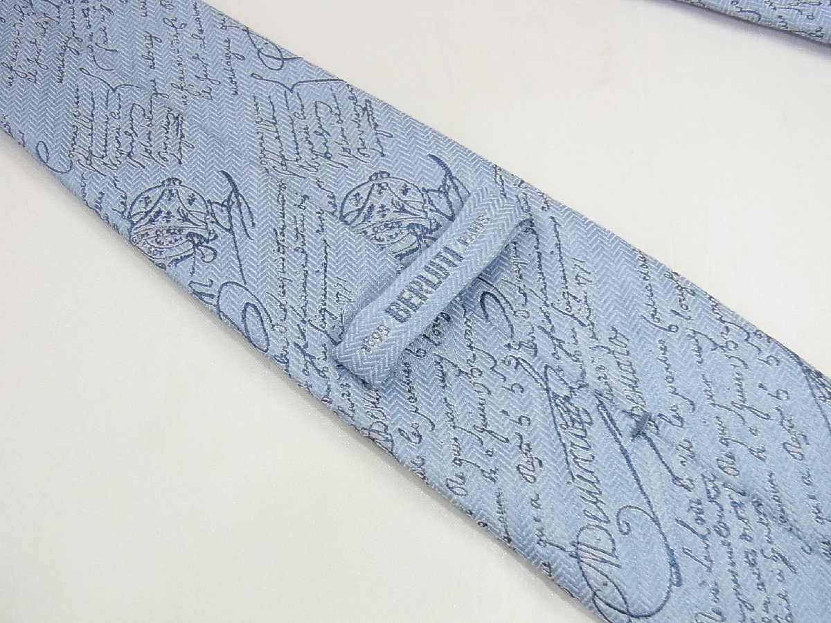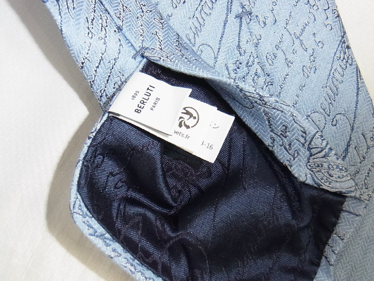 ベルルッティ BERLUTI ネクタイ メンズ カリグラフィ ライトブルー シルク55% リネン45% 箱有 中古美品 | |