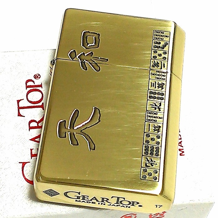 商品説明 | 「GEAR TOP オイルライター」 GEAR(道具)TOP(頂点)を目指す高品質な日本製スモーキングブランド。 揮発防止キャップ「GT-ARM」によりオイルの揮発を抑制・防止して、オイル充填後、1日20回使用で約30日間使用可能。(外部環境や使用方法により変動します。) 「ポケットの中に世界最高水準のオイルライターを!」をスローガンに、熟練の職人による日本の最先端の金属加工技術を施し開発。 実用性、品質ともに高く、かつ先例のない「オイル持ち」を実現した『ECO』なオイルライターとなっています。 真鍮燻しの本体に麻雀の役満柄を彫刻により表現したギアトップ。 真鍮素材は永年使用するにつれ味が増し、自分だけのオリジナルな色合いに変化していきます。 プレゼントにも非常にお勧めな精巧な日本製ライターです。 |