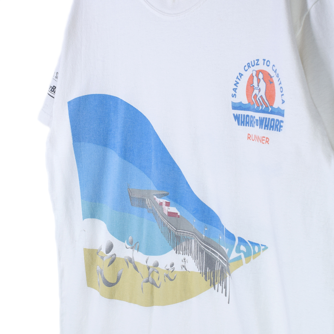 【送料無料】00s サンタクルーズマラソン大会 ハイチ製 ヴィンテージTシャツ スポンサー シーゲイト ニューバランス ホワイト M @BE9016