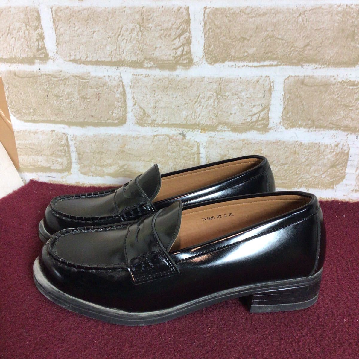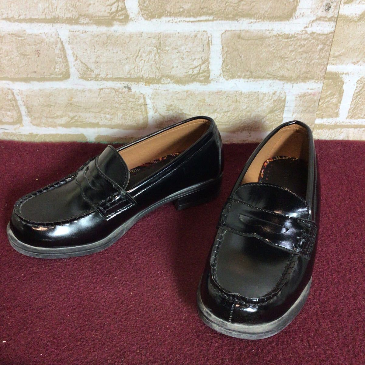 【売り切り!送料無料!】A-334 TOPVALU!ローファー!22.5cm!黒!!ブラック!学生!高校生!通学!冠婚葬祭!制服!中古!