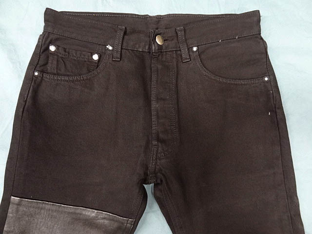 マルタンマルジェラ 0 10 初期 フランス製 アーティザナルブラックデニム&レザーコンビパンツ
