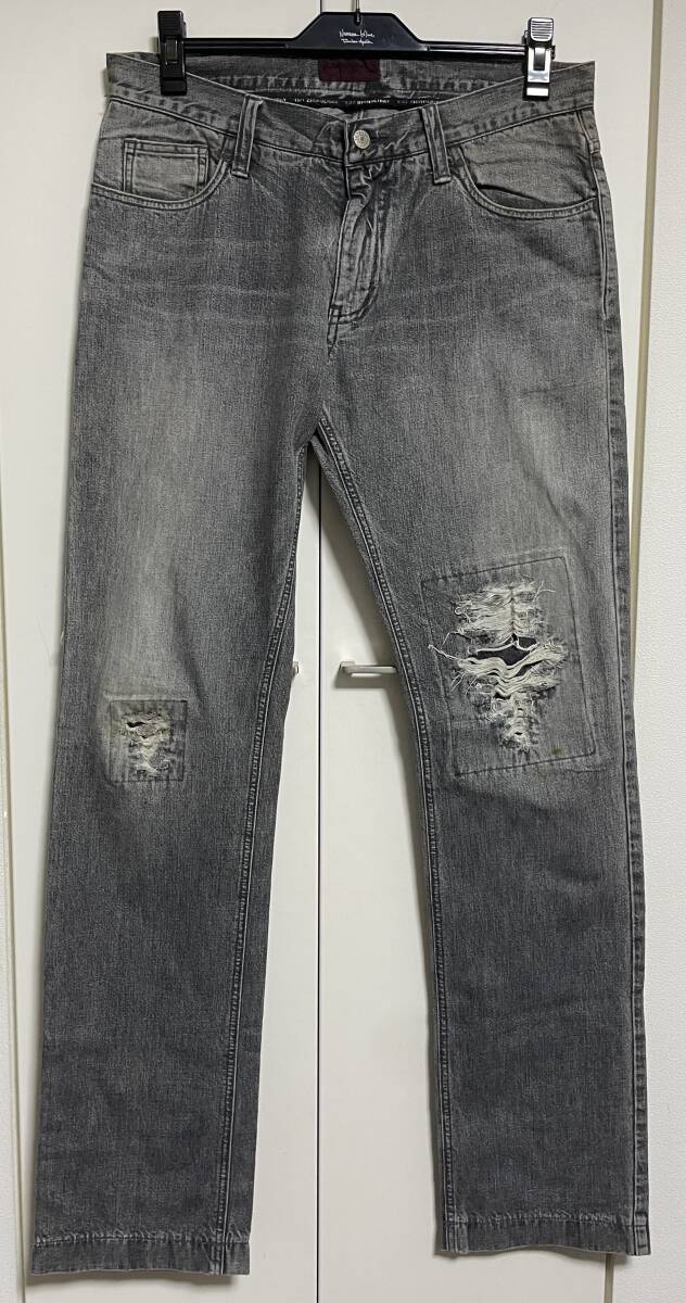 TMT ダメージ&ウォッシュ加工デニムパンツ になります。ブランド初期のもので木村拓哉さんがフジテレビドラマ「空から降る一億の星」にて着用されたものの同型同色のものです。当該ブランド初期特有の加工が施された拘りが詰まった逸品です。美しいシルエットも特長です。