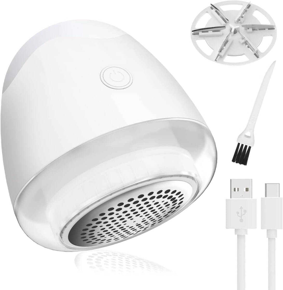Dayup 毛玉取り 電動 けだまとり USB充電式 毛玉取り器 強力 6枚刃モデル 高速回転 切れ味 毛玉取り機 取り時間短縮 生地を傷めない コードレス 持ちやすい 毛玉カット 毛玉とり 安全機能搭載 様々な類 靴下 マフラーのけだまとるとる 毛玉クリーナー LED照明搭載 替刃一枚 清掃用ブラシ付属 日本語取扱説明書付き(ホワイト)