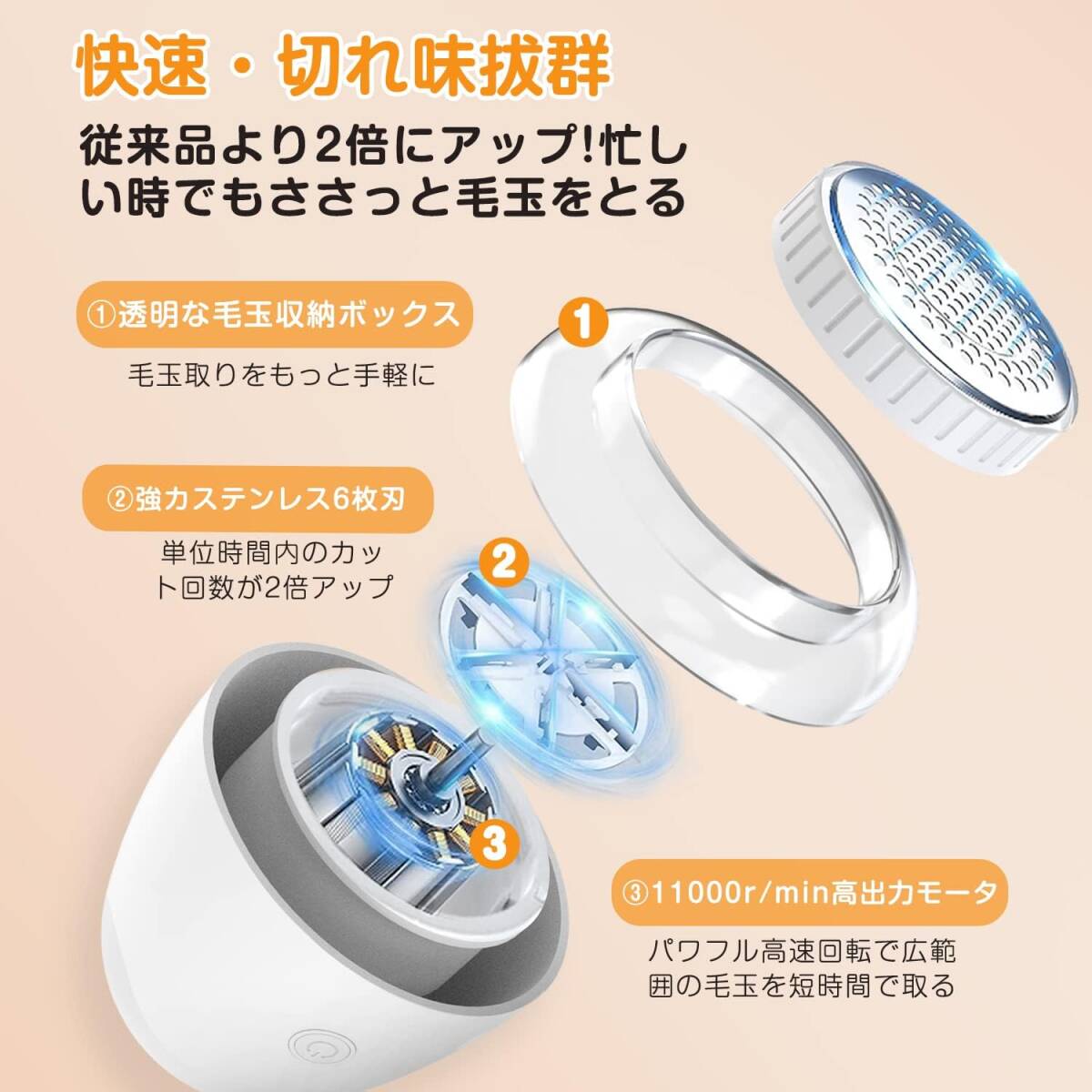 【強力6枚毛玉カッター・切れ味抜群】2023版最新改良毛玉取りは、従来の3枚刃から高品質の強力ステンレス6枚刃に大幅改良し、どんな頑固な毛玉もすいすい取れます。高速回転9000r/mモーターと合わせて、生地を守りながら衣服の表面に付いた毛玉を1~2分間により素早く綺麗に取り除きます。毛玉の少ない着物(靴下、帽子、スカーフなど)はもちろん、大型家具(ソファー、カーペットなど)も気軽に毛玉を取ります。
