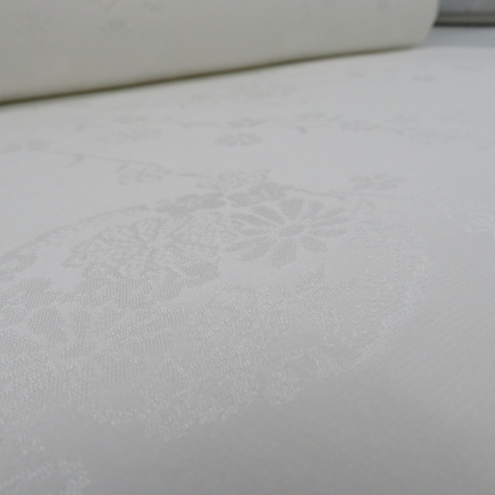 | 反物 襦袢反物 正絹 白系 花に雪輪柄 スワンシルク 長襦袢 フォーマル 和柄 未仕立て品 和裁練習 生地 長さ1350cm |