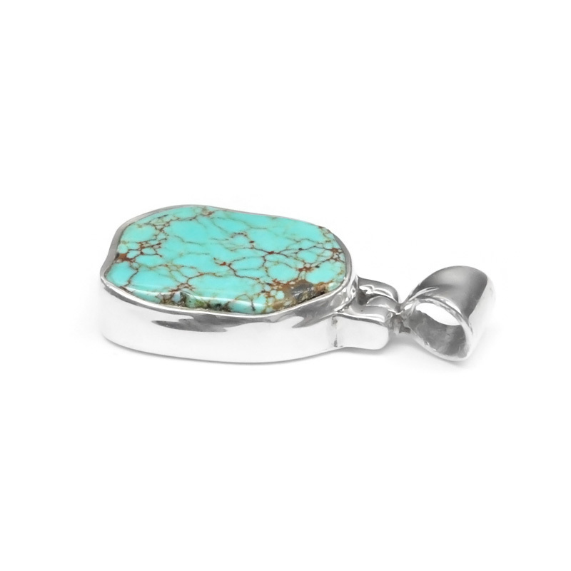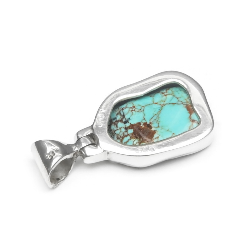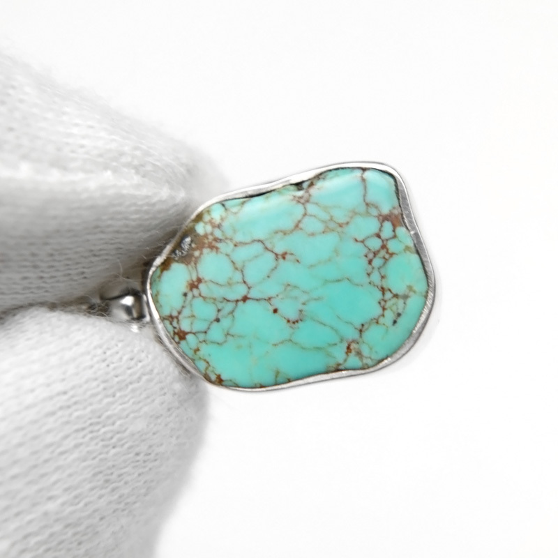 ランダムな形状に独特の鮮やかなブルーグリーンが目を引くメキシカンターコイズのペンダントトップです。