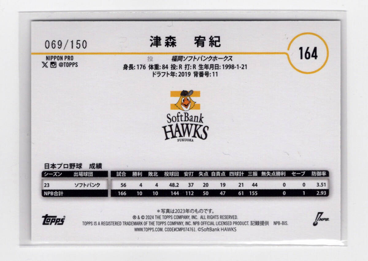 150枚限定!【津森宥紀 / Yuki Tsumori】2024 Topps NPB ★ 福岡ソフトバンクホークス Softbank Hawks