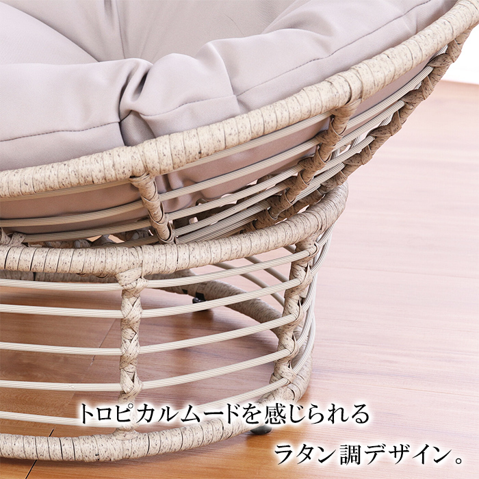 しなやかなラインが美しいラタンは通気性もよく、隙間がチェア全体に程よい解放感をもたらします。