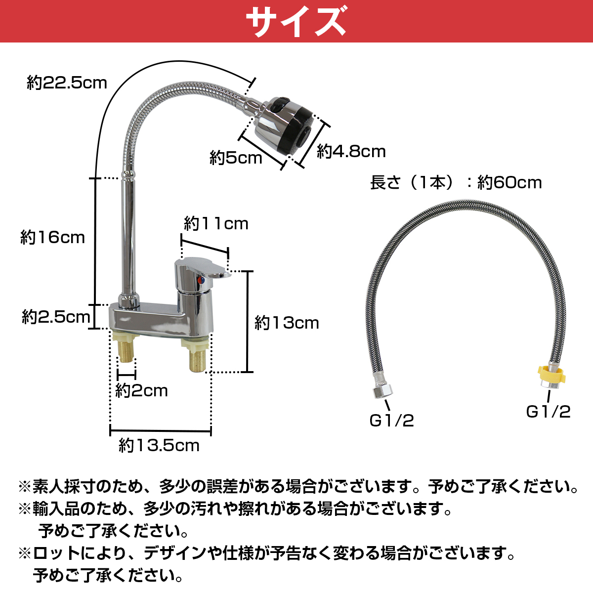 シャワー式 蛇口 洗面台 シングルレバー ツーホール式 混合水栓 温冷 対応 2本 立水栓 水道 洗面 シャワー 洗髪 ヘッド