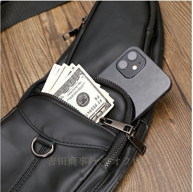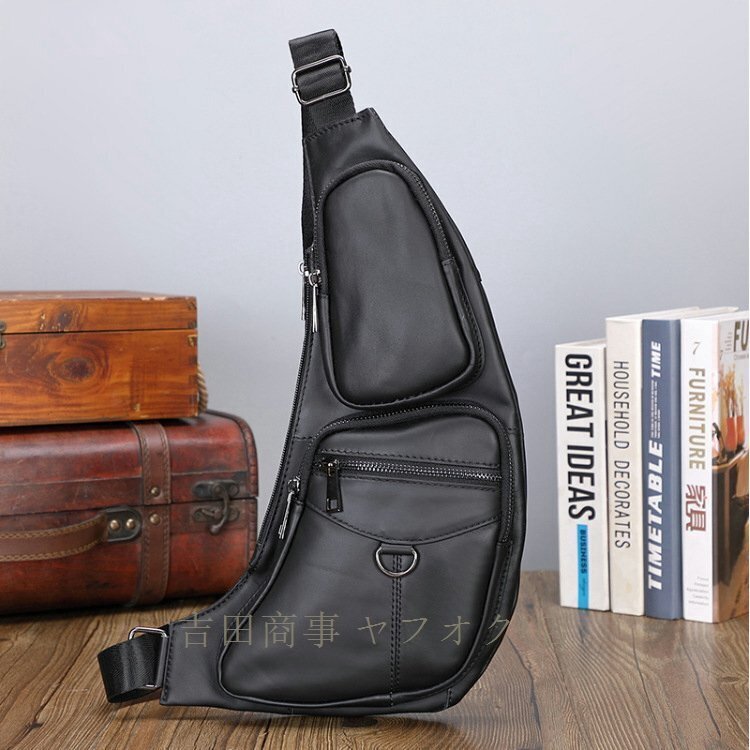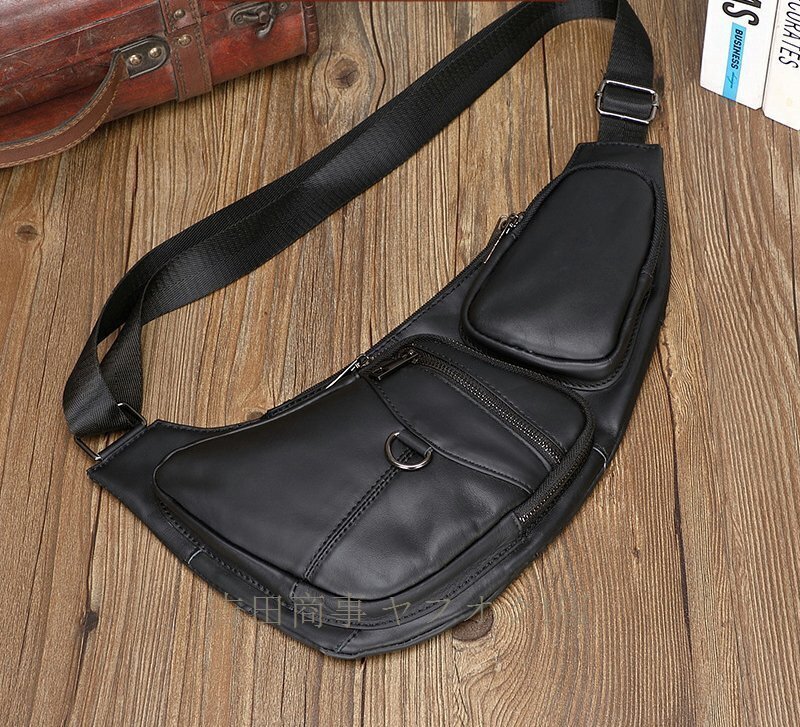 ★新品美品 実物写真 本革 メンズ ボディバッグ 牛革 レザー ワンショルダーバッグ おしゃれ 多機能 左右肩掛け替えブラック