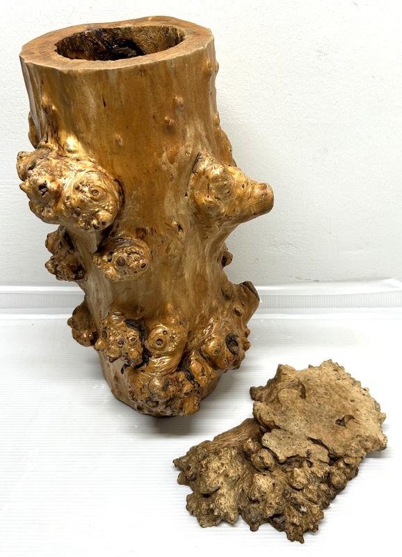 天然木 瘤木の花入 高さ約37.5cm & コブ/瘤 花台 2点セット 筒型花入/花器/花生 切り株/輪切り/敷板/花瓶台/飾台/盆栽台/置物台/平卓 流木/床飾/茶室/和室/華道具/茶道具/時代物/年代物 | |