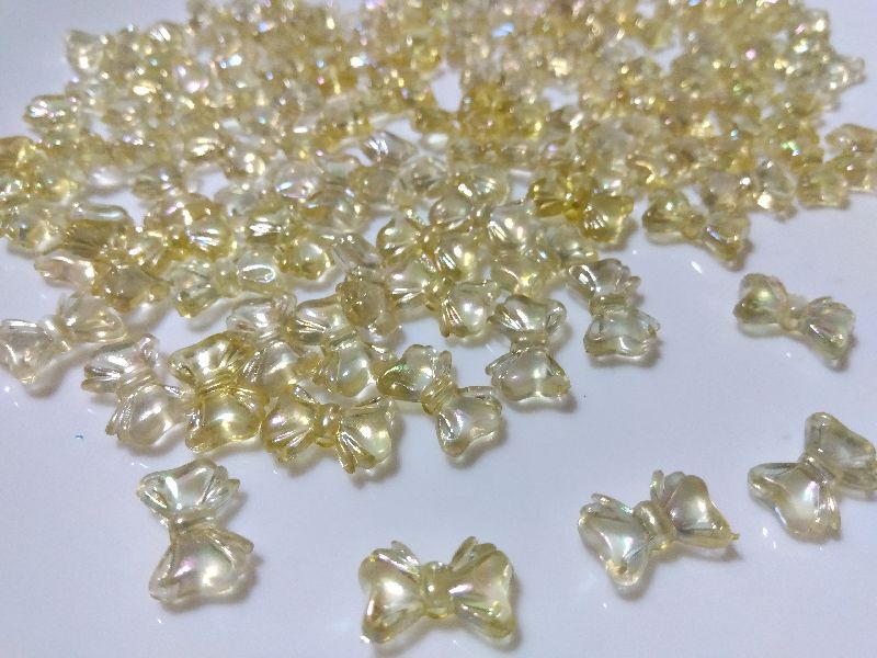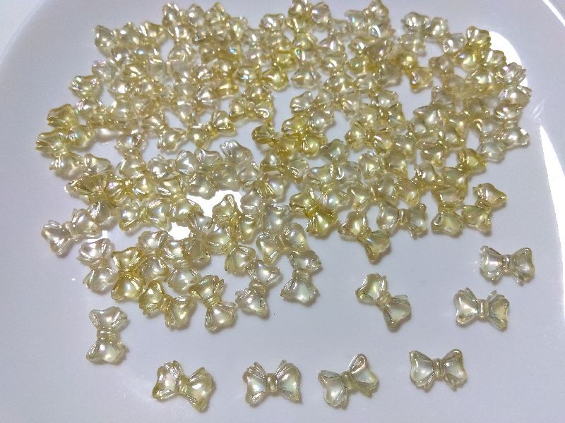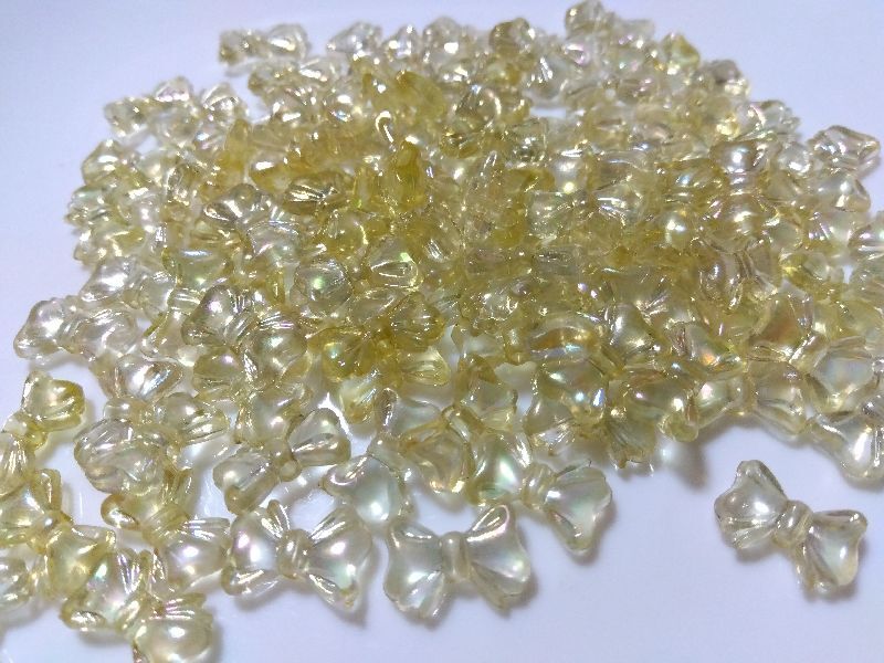 手芸用品く68■薄い黄色系リボン型アクリルビーズ100個セット■オーロラ*アクセサリーパーツハンドメイド