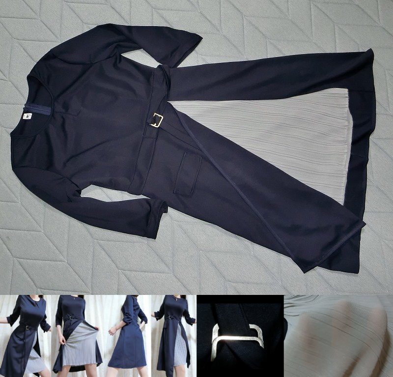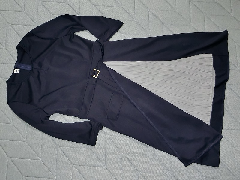 c1★清楚系★内側プリーツ 重ね着風ワンピース★ベルト風飾り