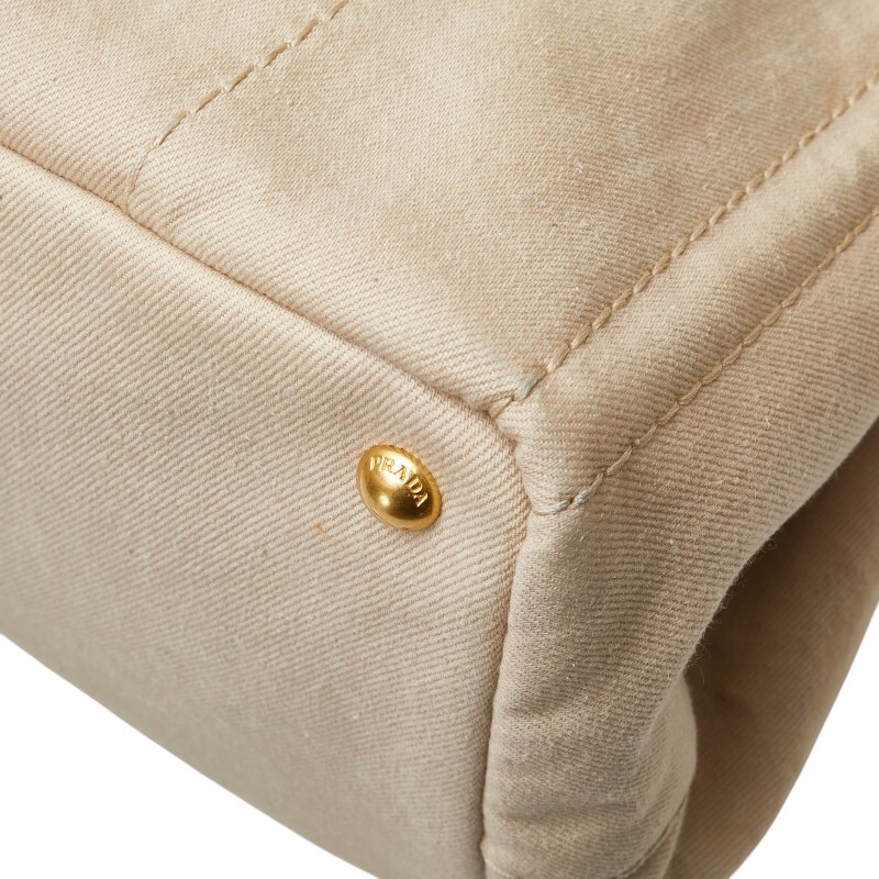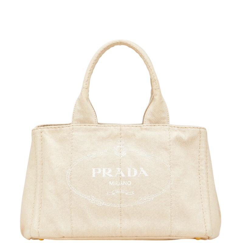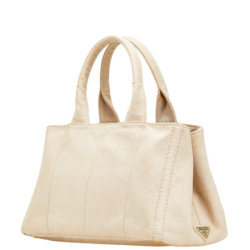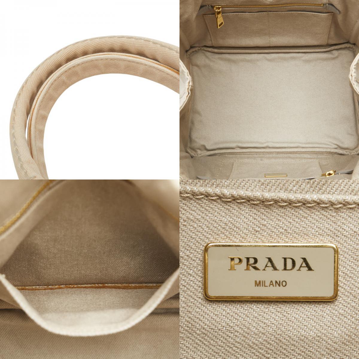プラダ 三角ロゴプレート カナパM ハンドバッグ B1877B ベージュ キャンバス レディース PRADA 【中古】