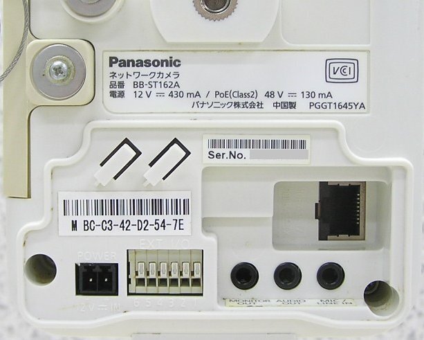 ■Panasonic/パナソニック BB-ST162A H.264&JPEG対応 PoE給電ネットワークカメラ(屋内タイプ) ブラケット付 動作良好!2台セット