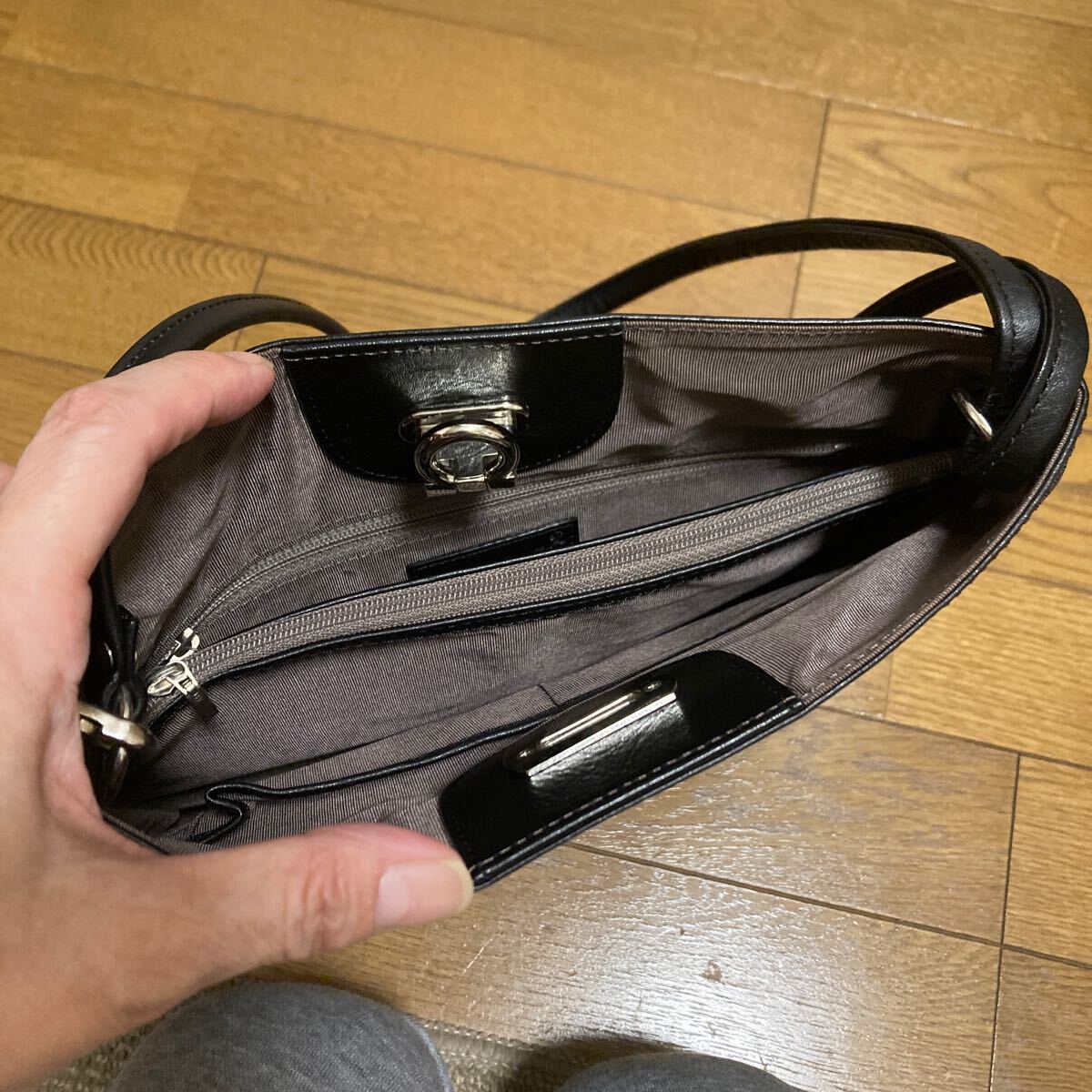 ★中古美品★Kitamura 2 キタムラ 本革 小さめの2WAYショルダーバッグ ブラック黒