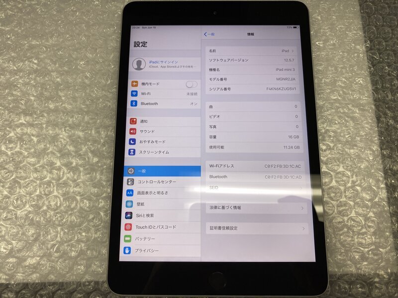 NZ329 iPad mini 第3世代 Wi-Fiモデル A1599 スペースグレイ 16GB