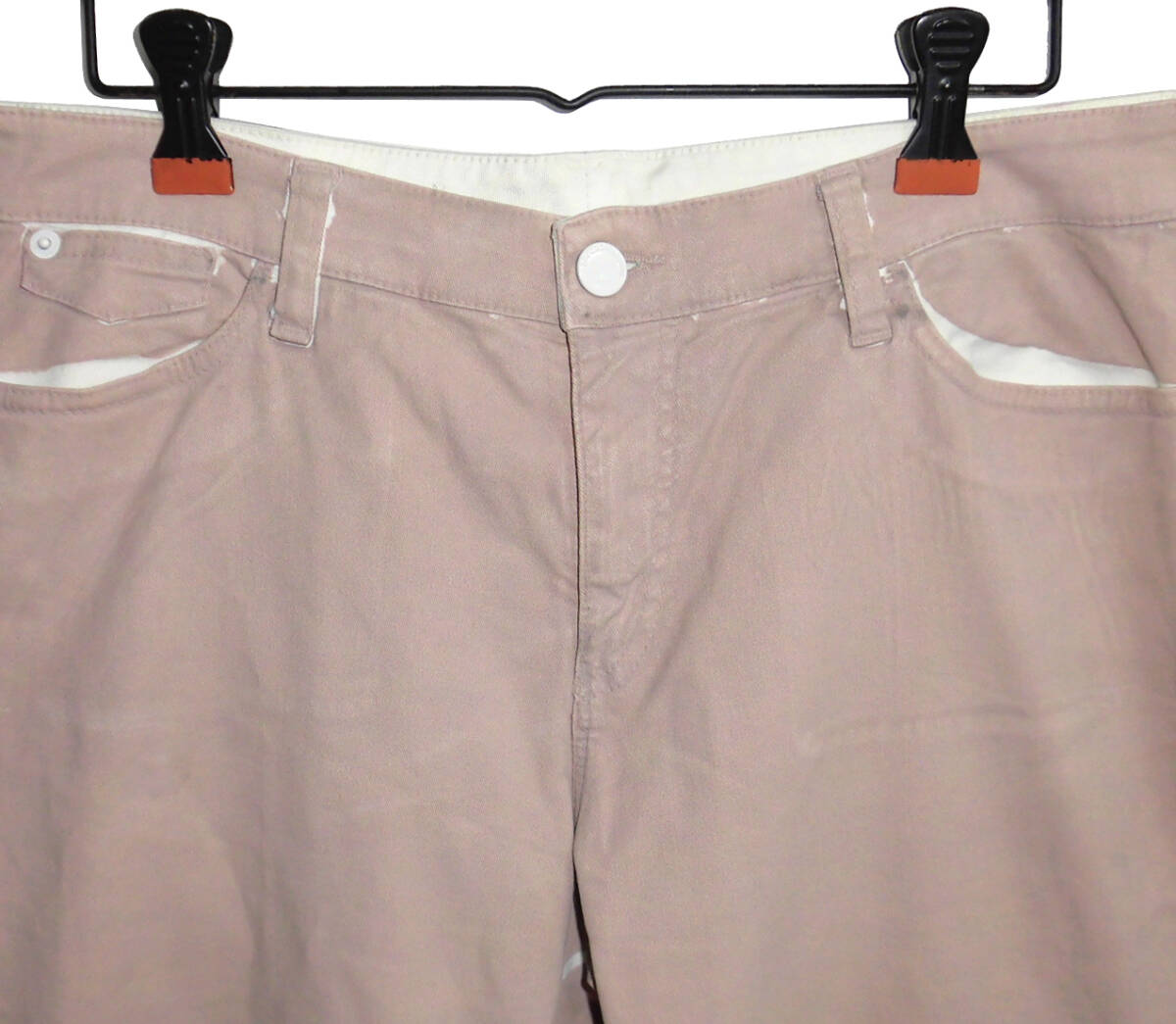 こちらは白の生地の上にコーラルピンクのプリントを施したストレッチパンツです。