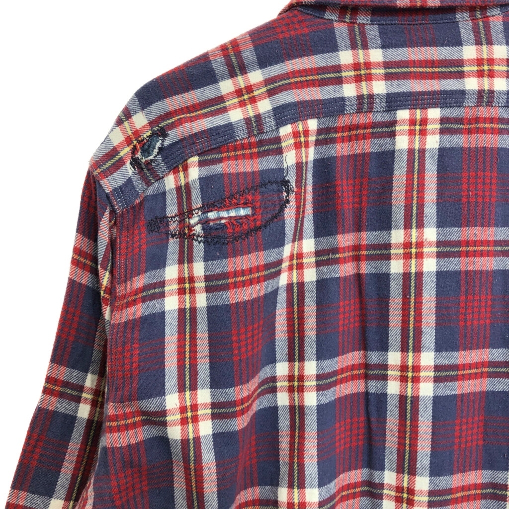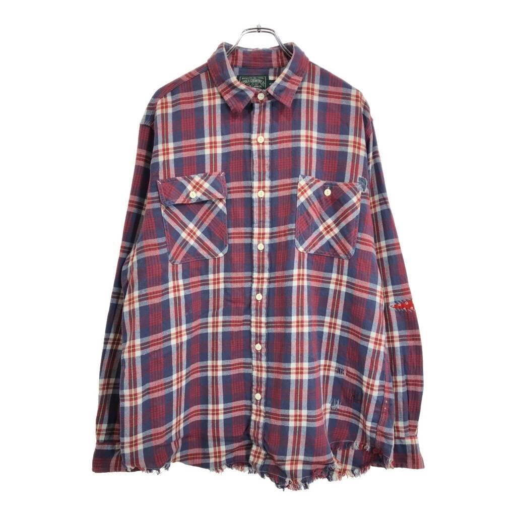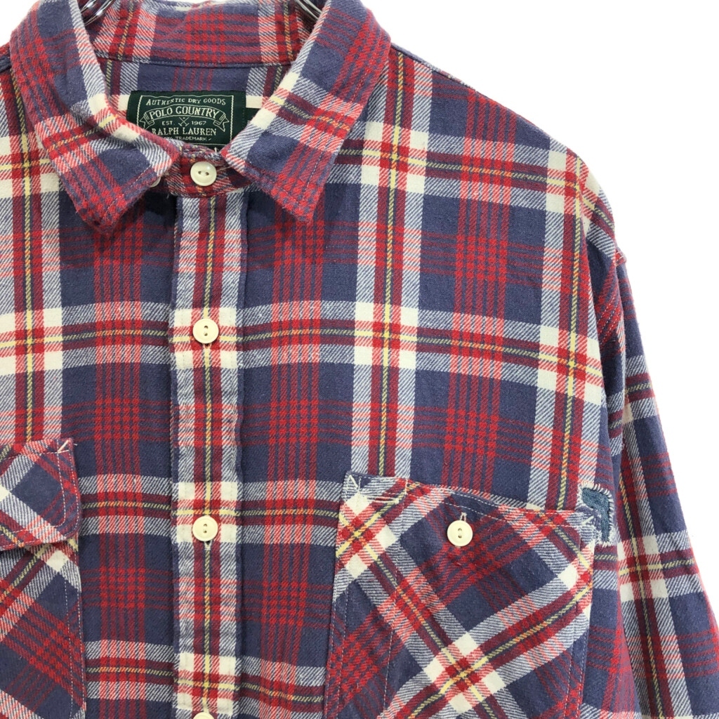 | [商品管理番号] U5210 [ブランド] POLO COUNTRY/ポロカントリー ラルフローレン [サイズ] XL [実寸サイズ] 肩幅:約50cm 着丈:約81cm 身幅:約65cm 袖丈:約67cm [主な素材] 表地 : コットン [色] マルチカラー [仕様] タータンチェック [状態] 汚れ:腹部 キズ:袖、胸、背中 特記事項:変色、リペア跡 | |||