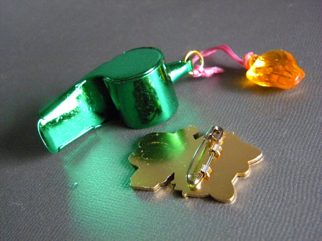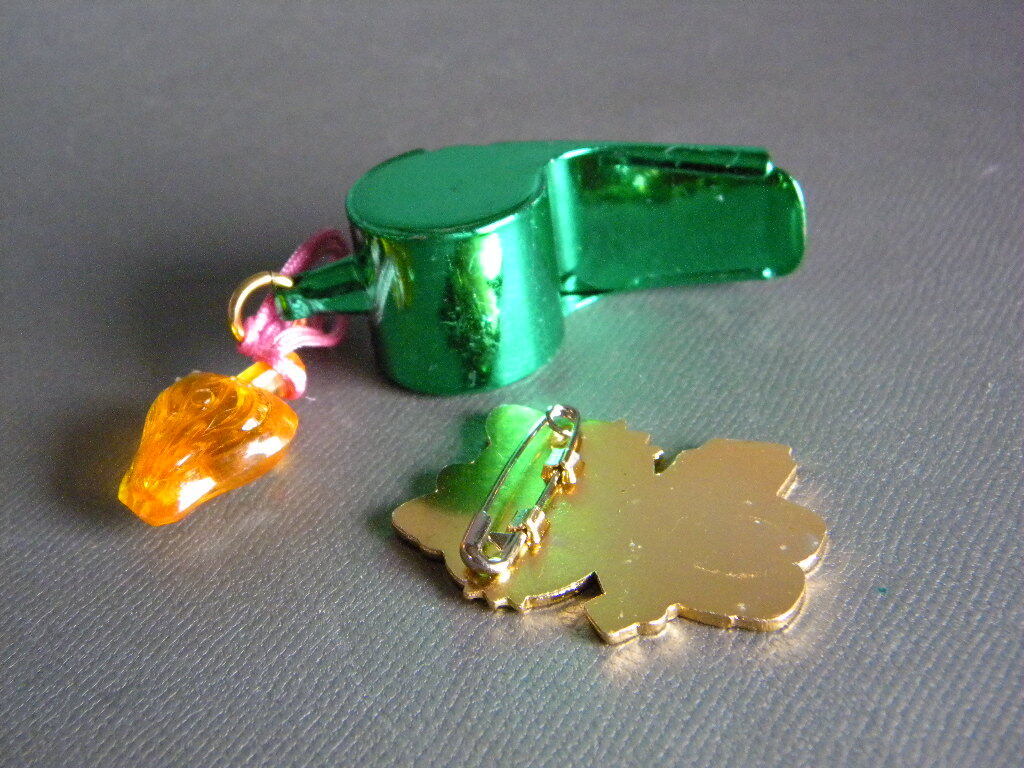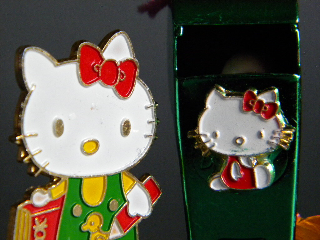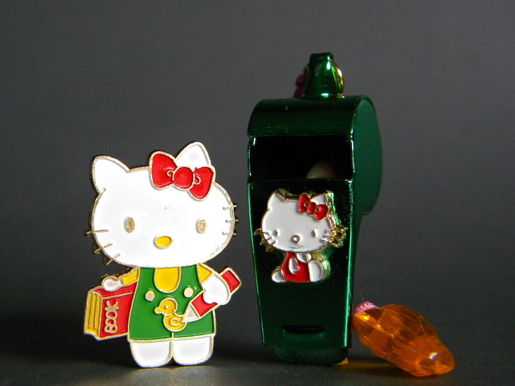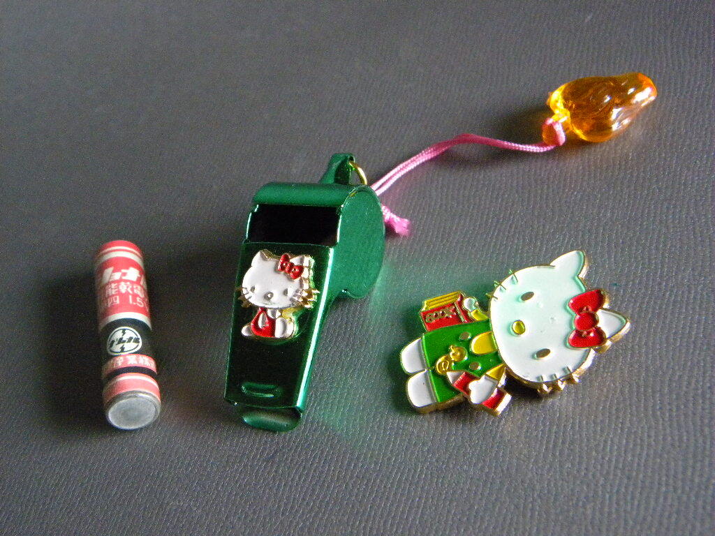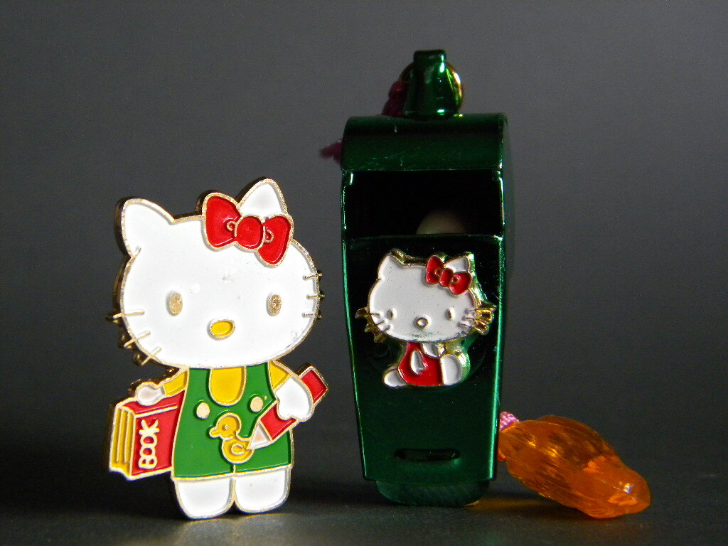 当時物 ★★Hello Kitty キティちゃん Whistle ブリキ 笛&バッジ !! ホイッスル 仔猫 ネコ 日本製 サンリオ パチ★★未使用デッドストック