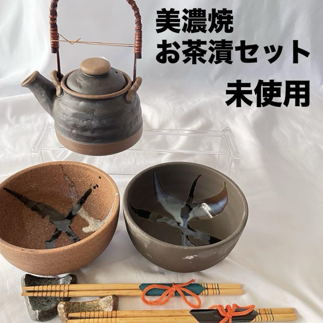 未使用 美濃焼 お茶漬セット 急須 丼 飯椀 茶碗 ペア 窯変釉 ミニどんぶり 箸置 箸 食器セット 和食器