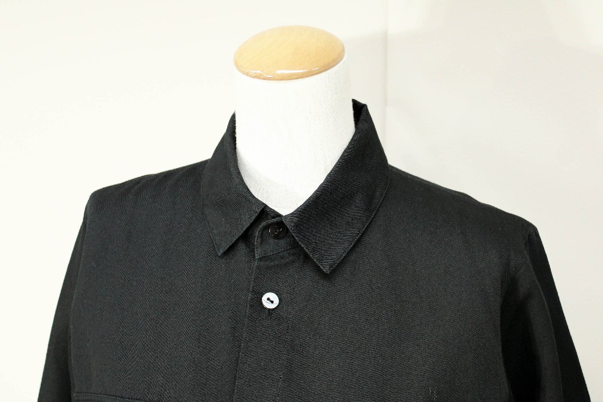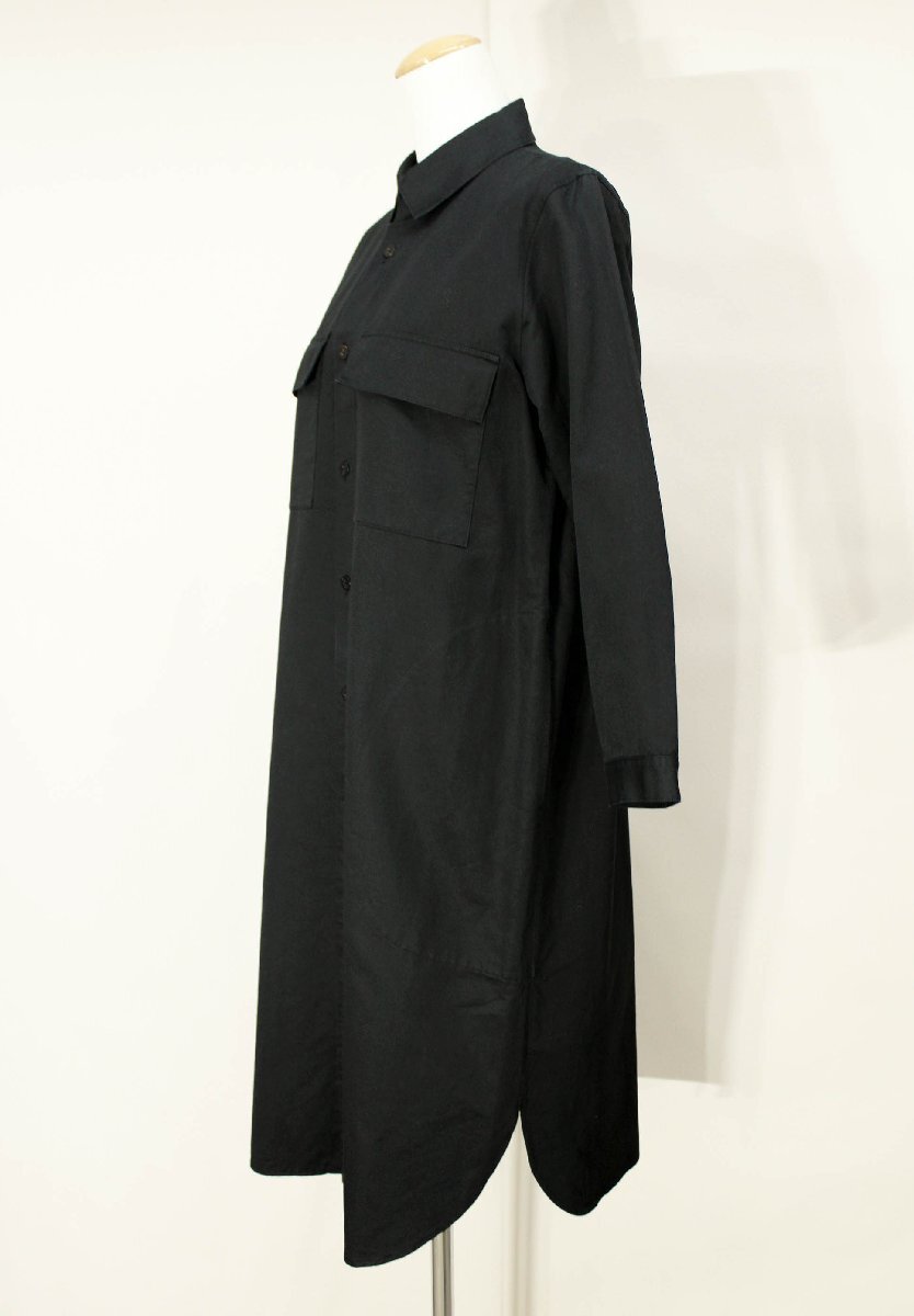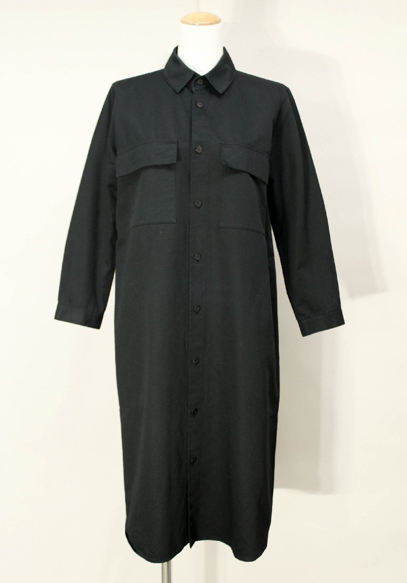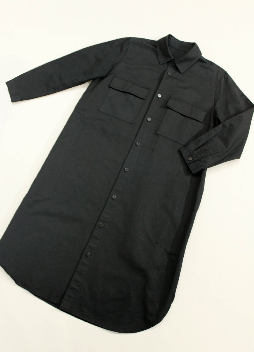 ☆美品☆ヨーガンレール/コットンリネン長袖シャツワンピース:M/黒yw984