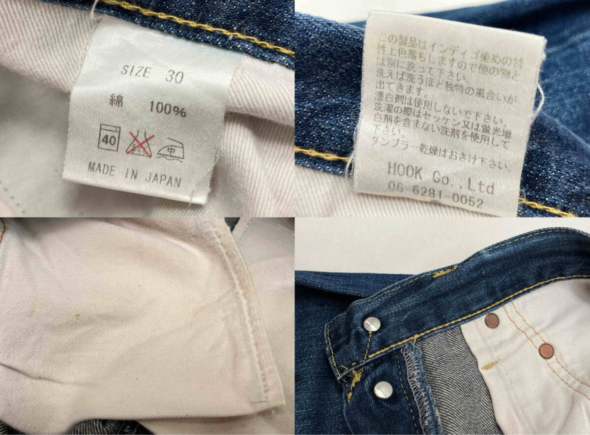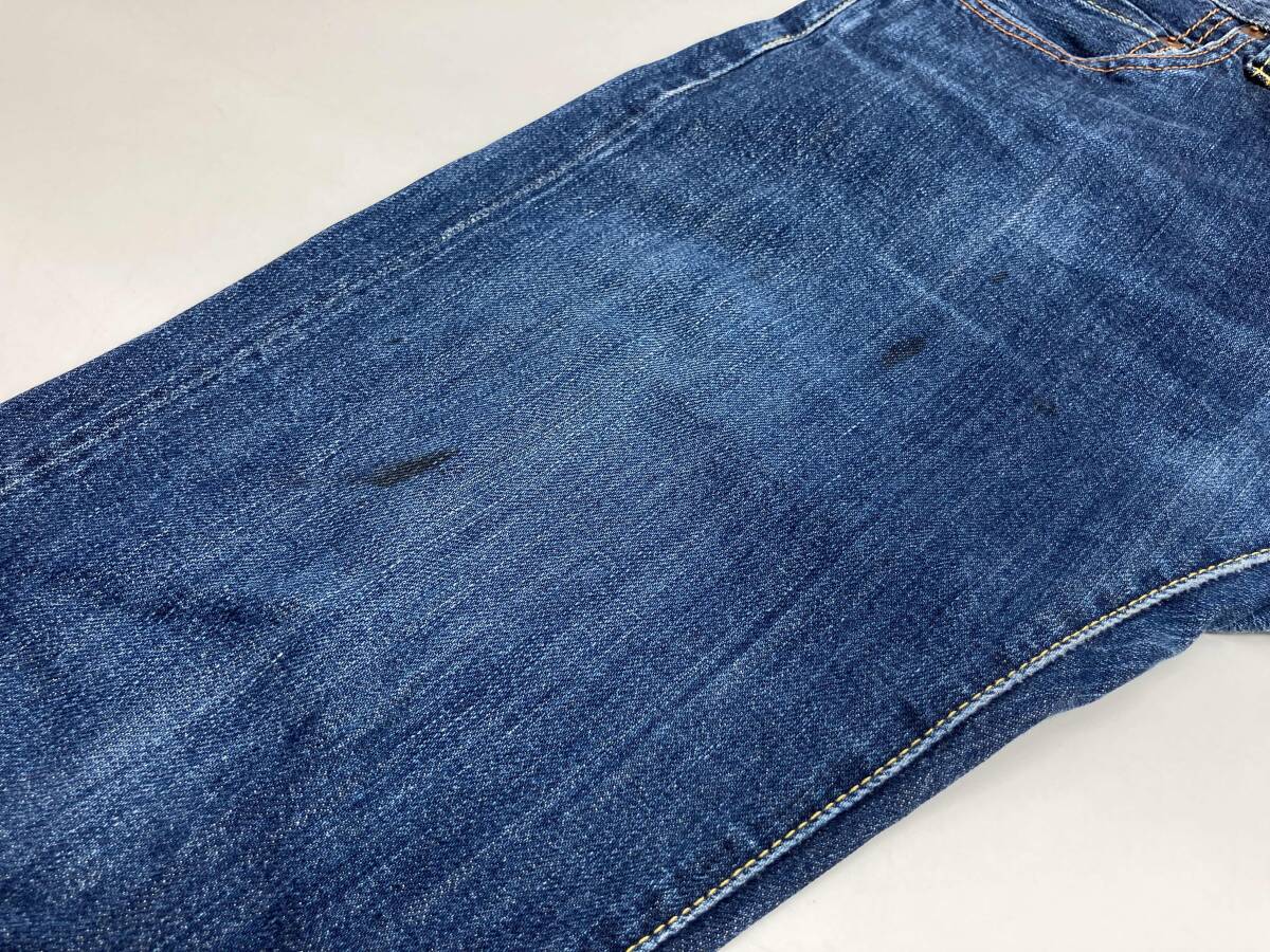 【状態について】 全体に毛羽立ちや擦れ、色あせがあります。 表面に汚れがあります。 ボタン、リベットにメッキの剥がれや傷があります。 パッチに傷や擦れがあります。 腰周りに型崩れや色あせ、毛羽立ち、縫い目のほつれなどの ダメージがあります。 裾の内側に擦れや毛羽立ちがあります。 股部分に目立つ毛羽立ちや擦れがあり、 縫い目が伸びています。 全体的に使用感のある状態です。 画像にあるものが全てです。 【サイズについて】 表記サイズ 30 ウエスト 約76cm 股下 約72cm 股上 約25cm 裾幅 約20cm ※多少の誤差はご了承ください。 |
