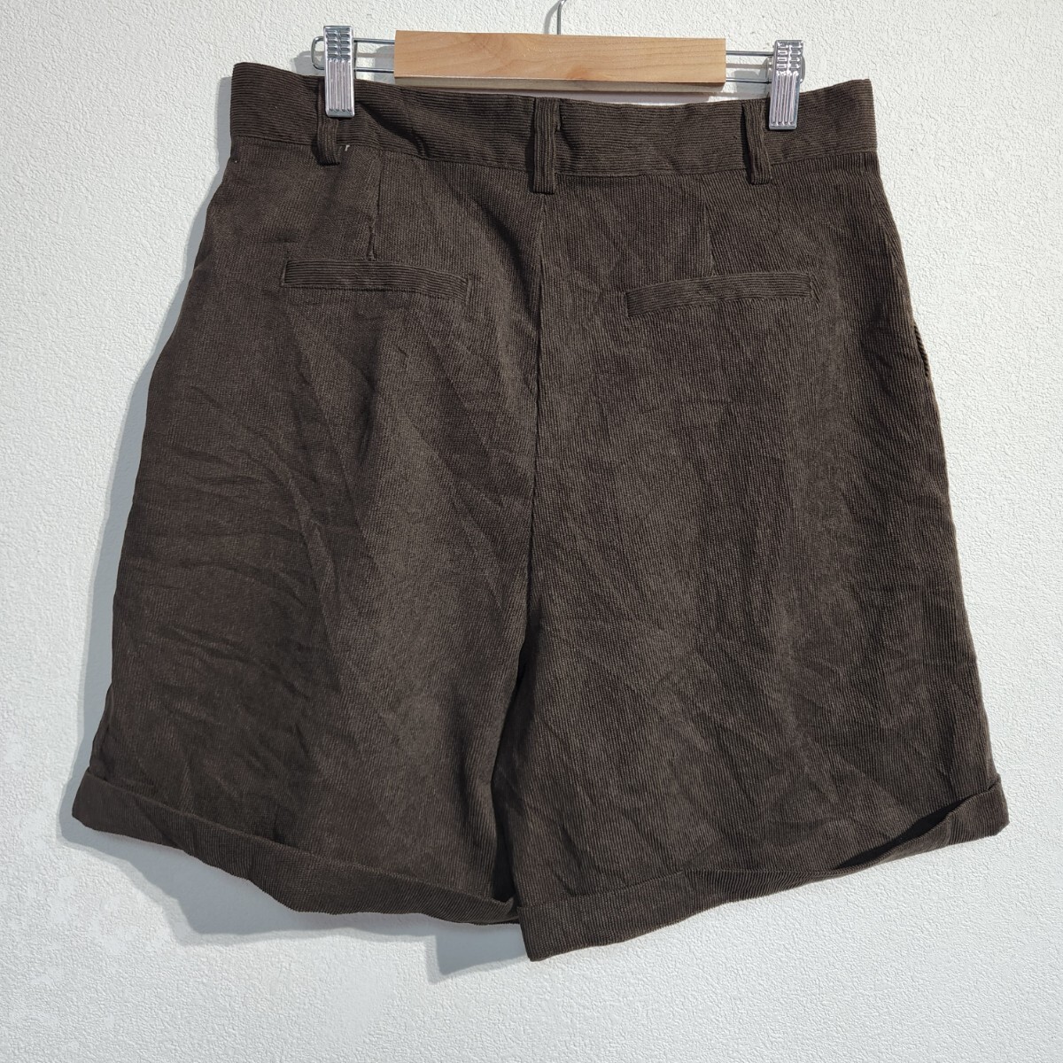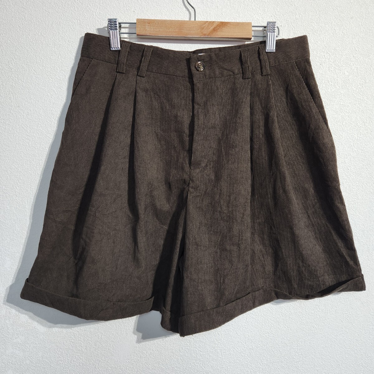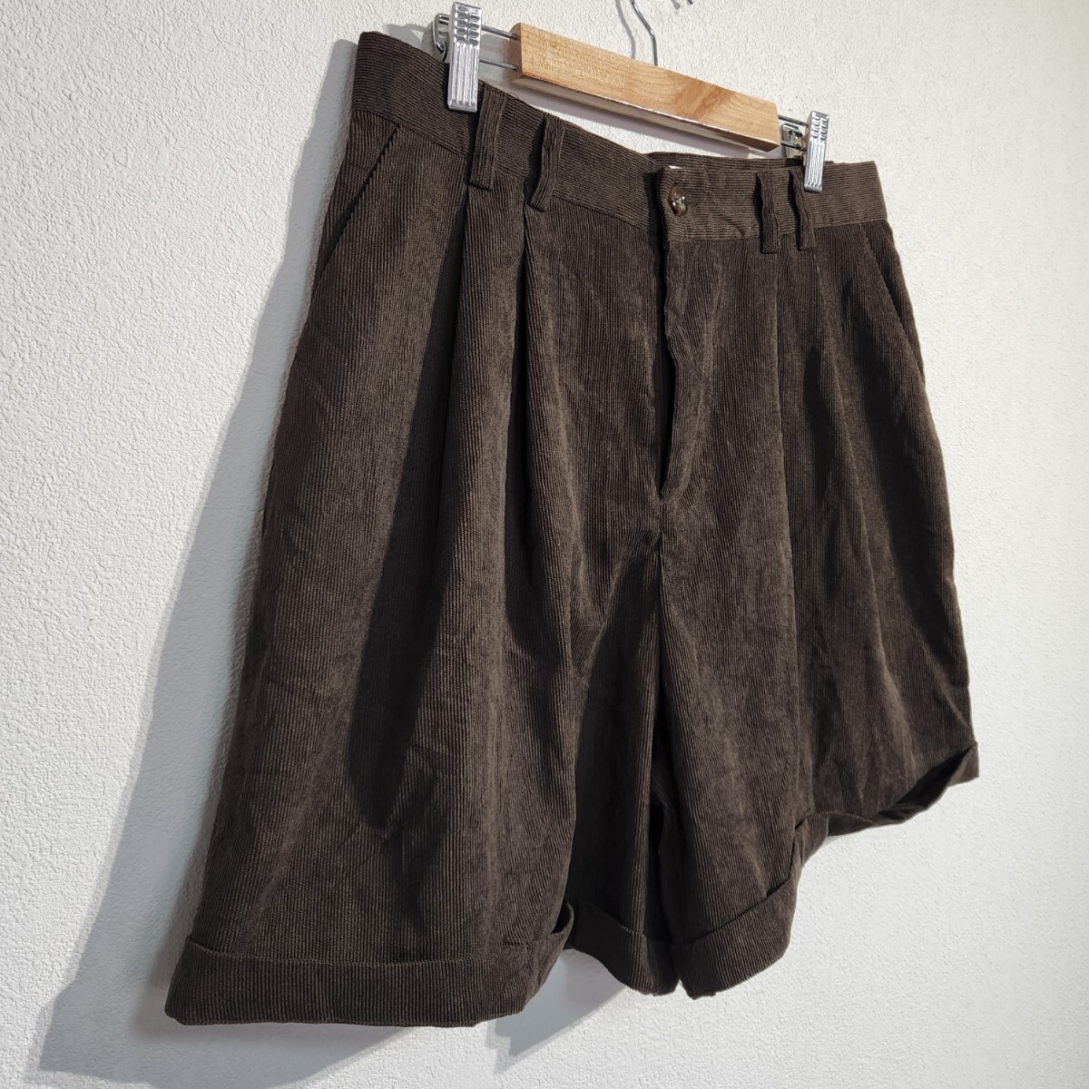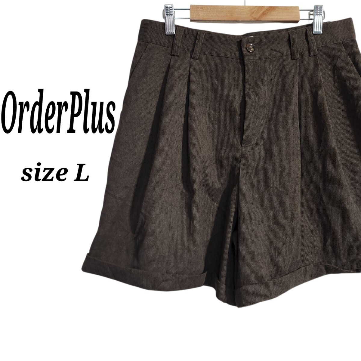 OrderPlus コーデュロイショーツ ハーフパンツ ショートパンツ ロールアップ 細畝 ユニセックス 茶 サイズ L オーバーサイズ 90s