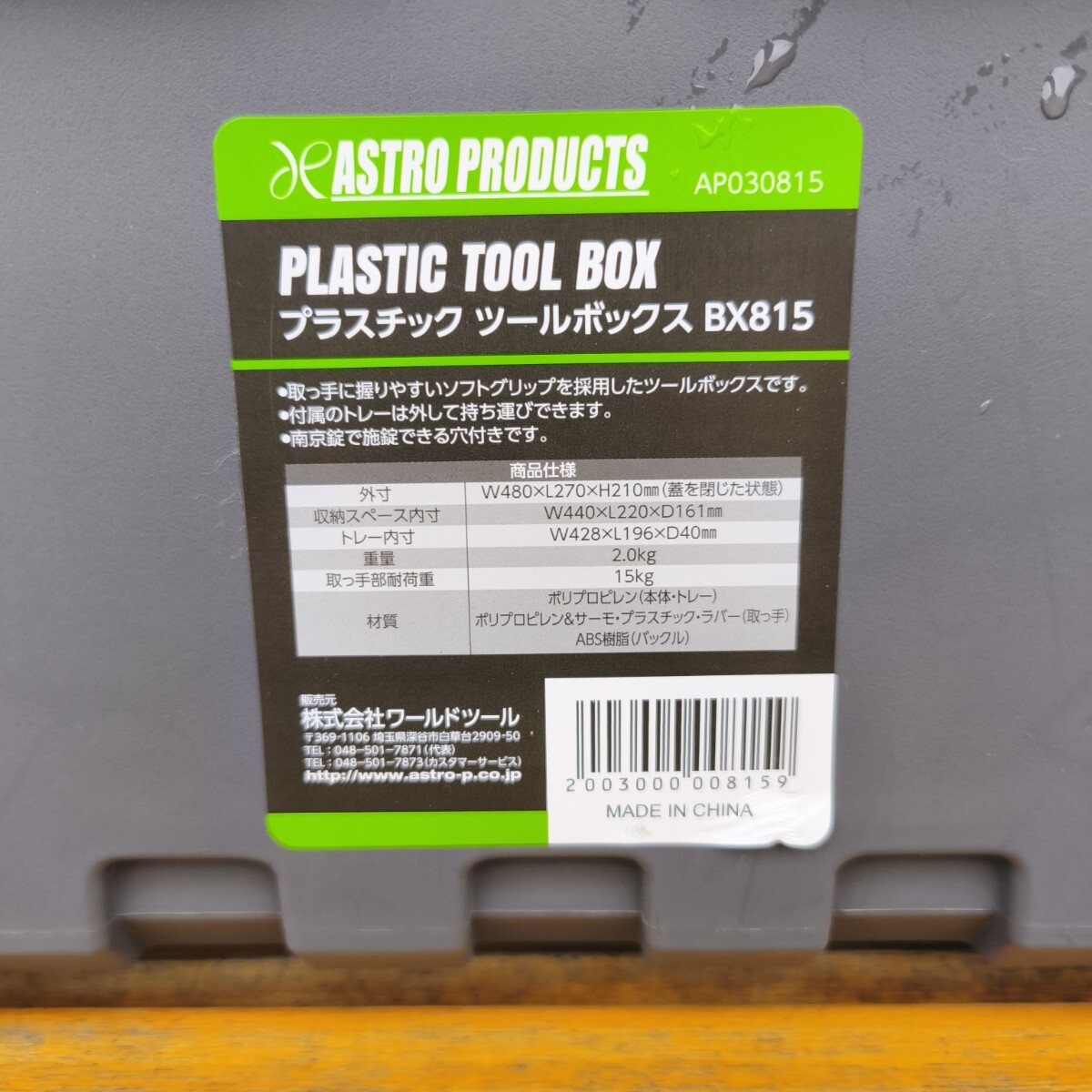 アストロプロダクツにて購入したプラスチック ツールボックス『BX815』で新品です!!
