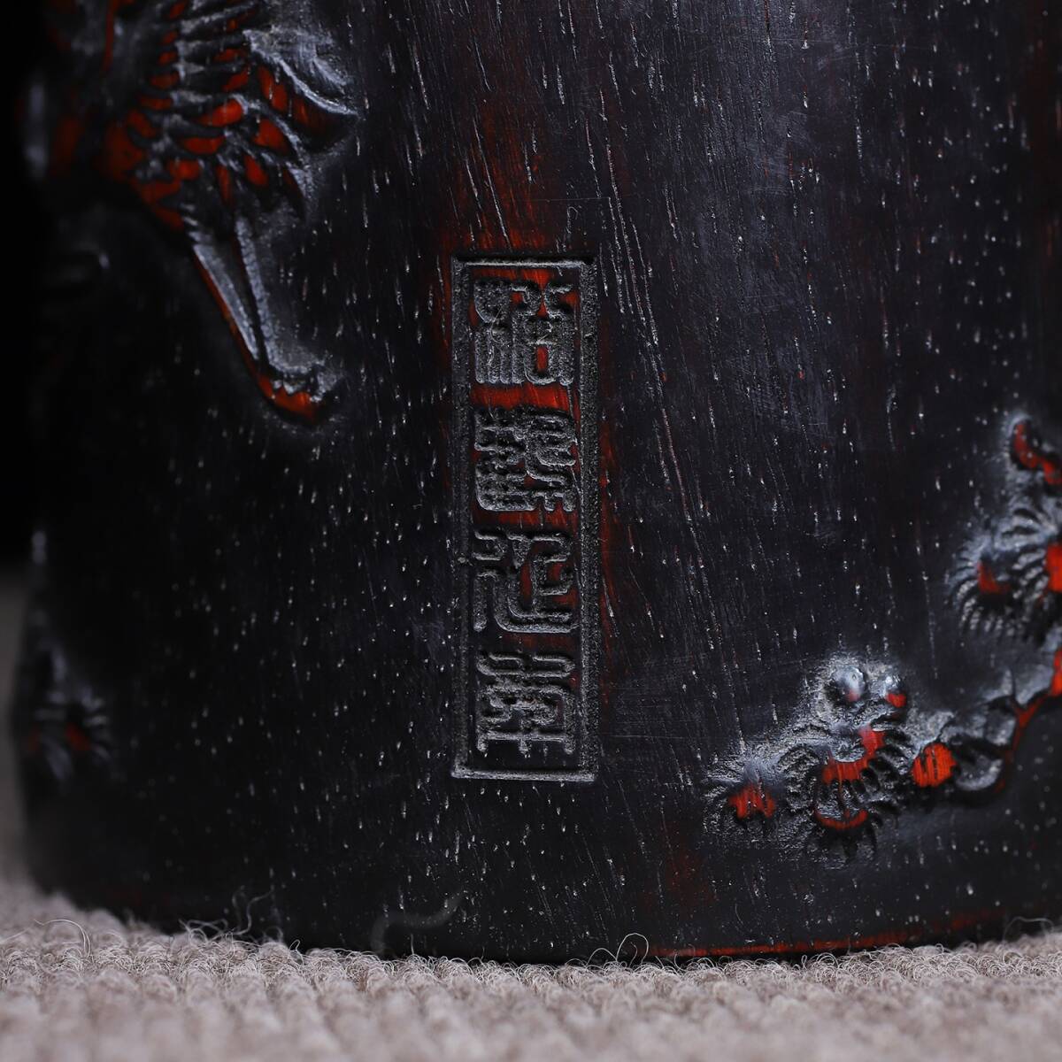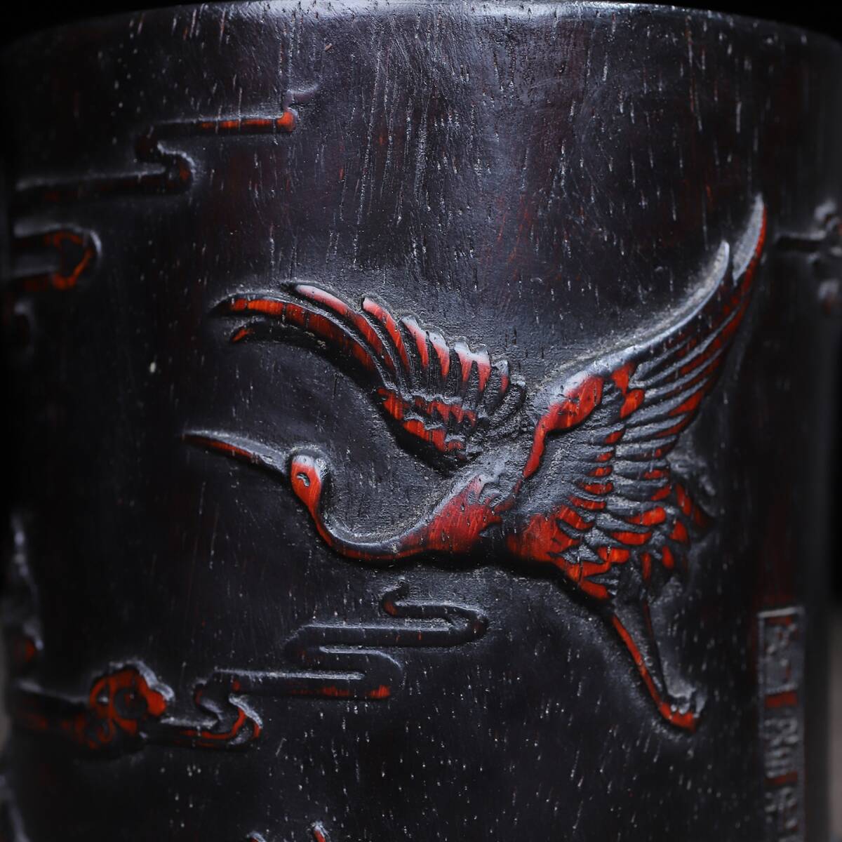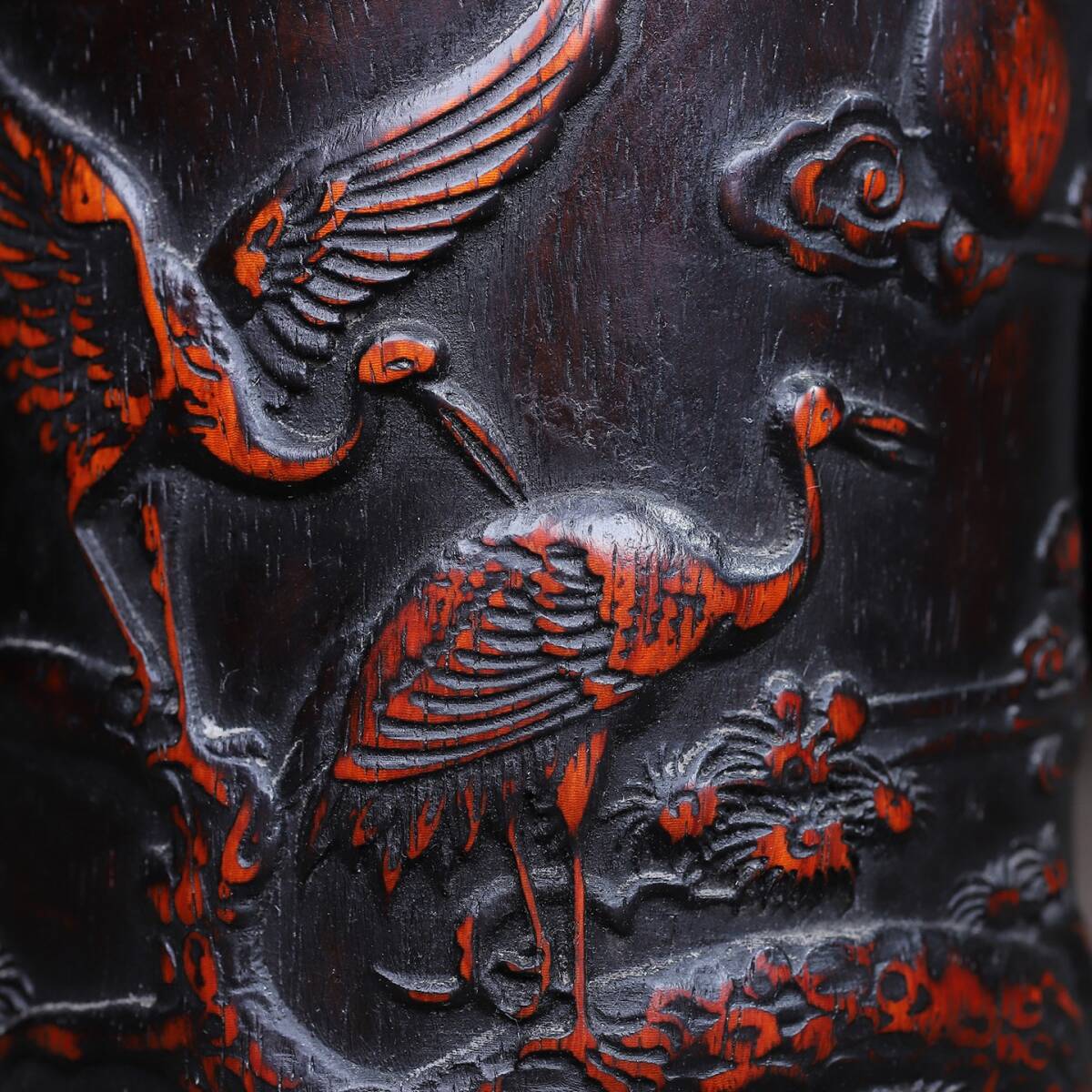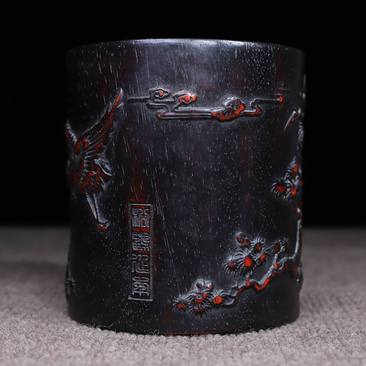 唐物 清 花梨木 彫刻 松鶴延年 圓筆筒 木制 極細工 古美術品 時代物 中国古玩 骨董品 D67