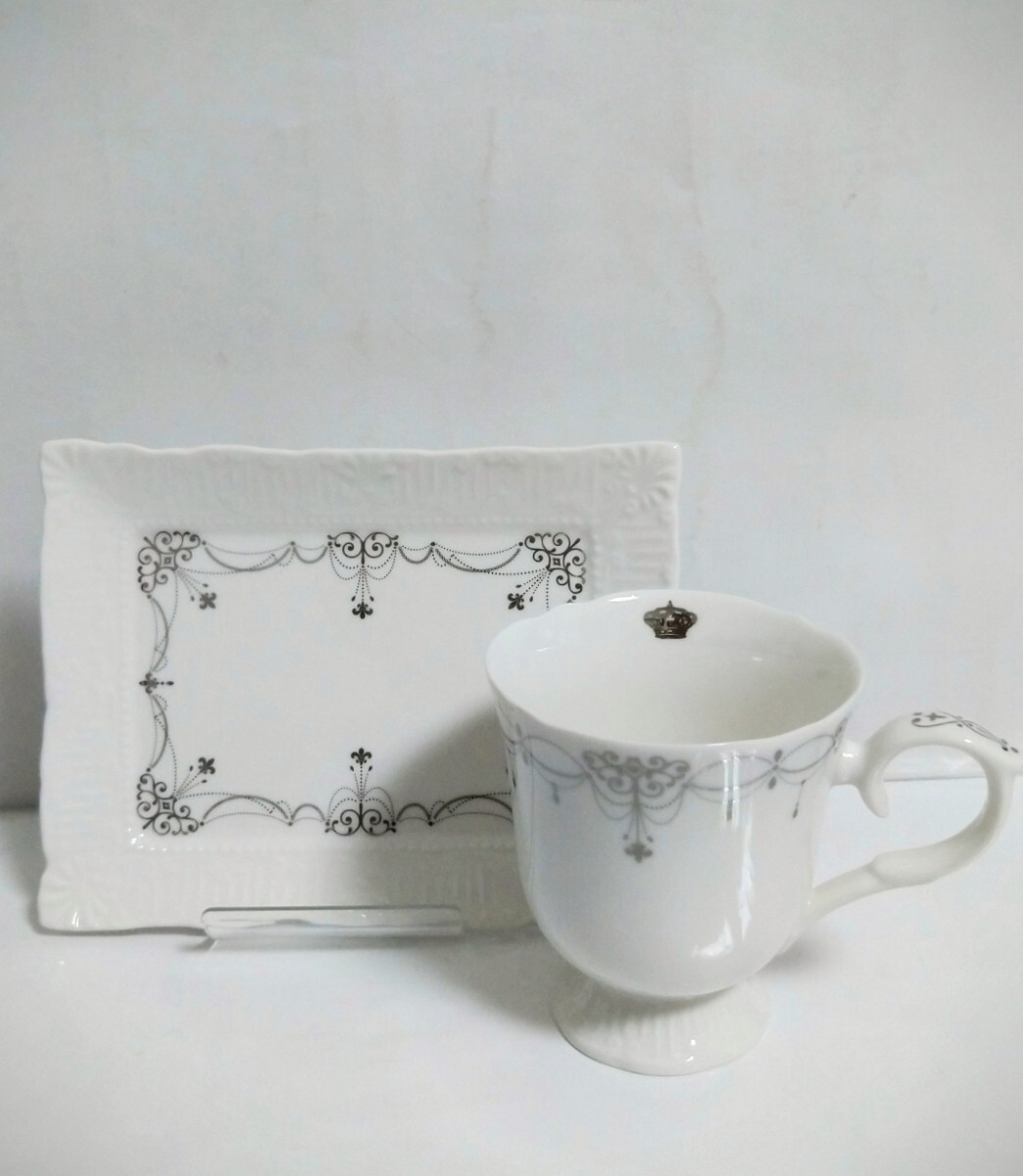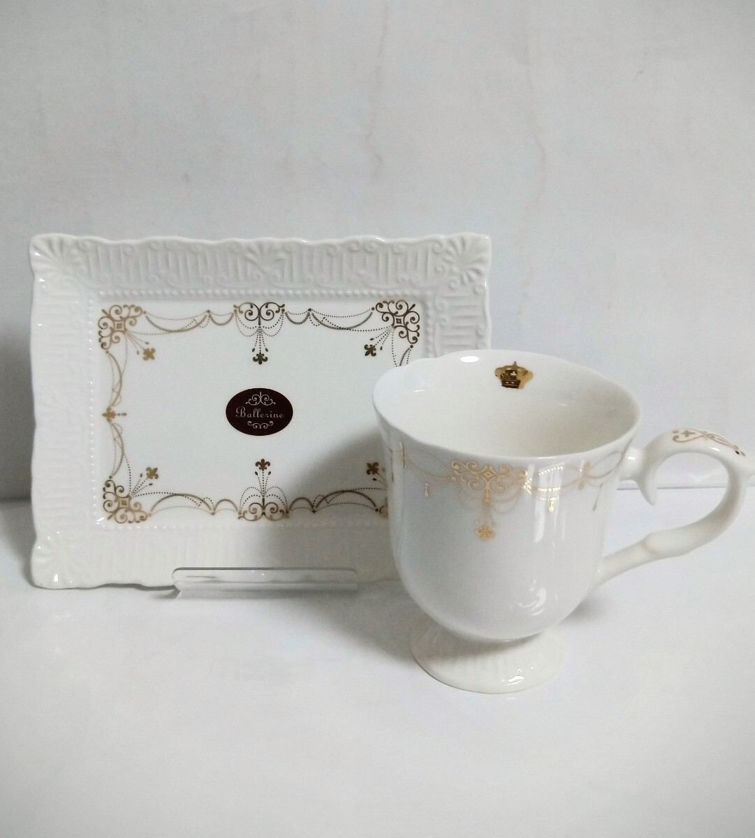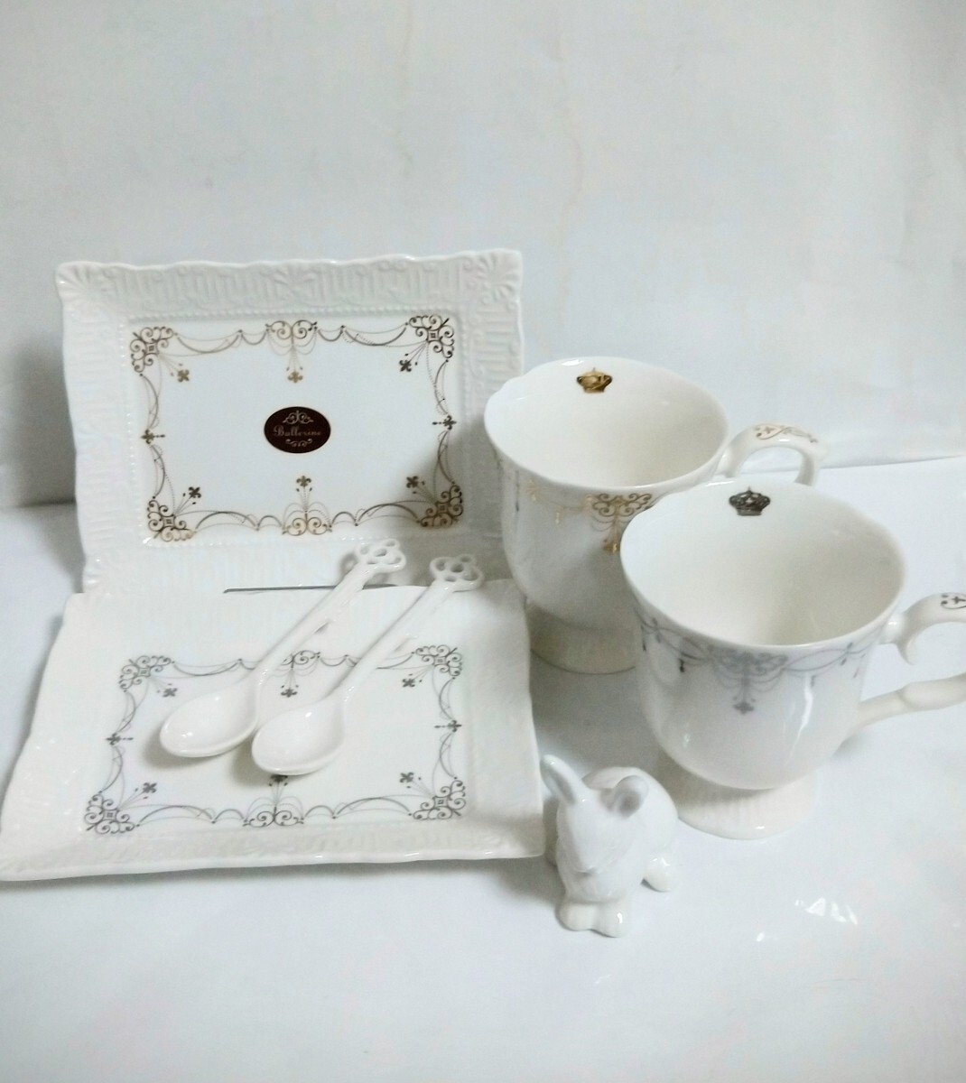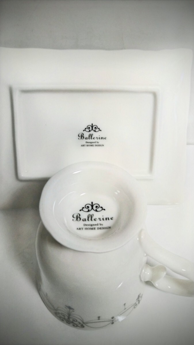 Ballerine バレリーヌ ペア スイーツタイム コーヒーカップ 皿付き ゴールド シルバー 2客セット 美品 未使用品 陶器製