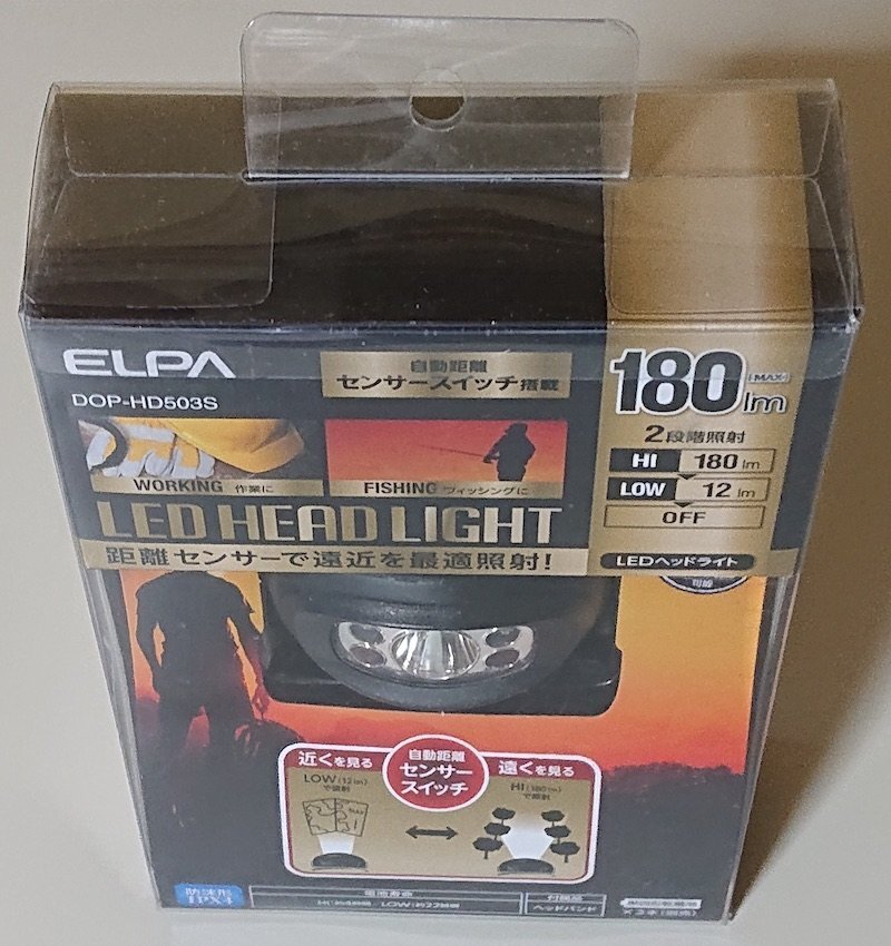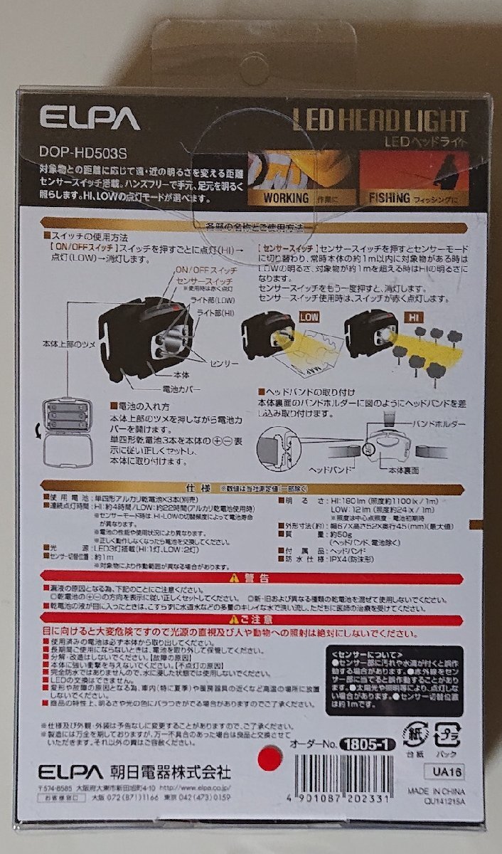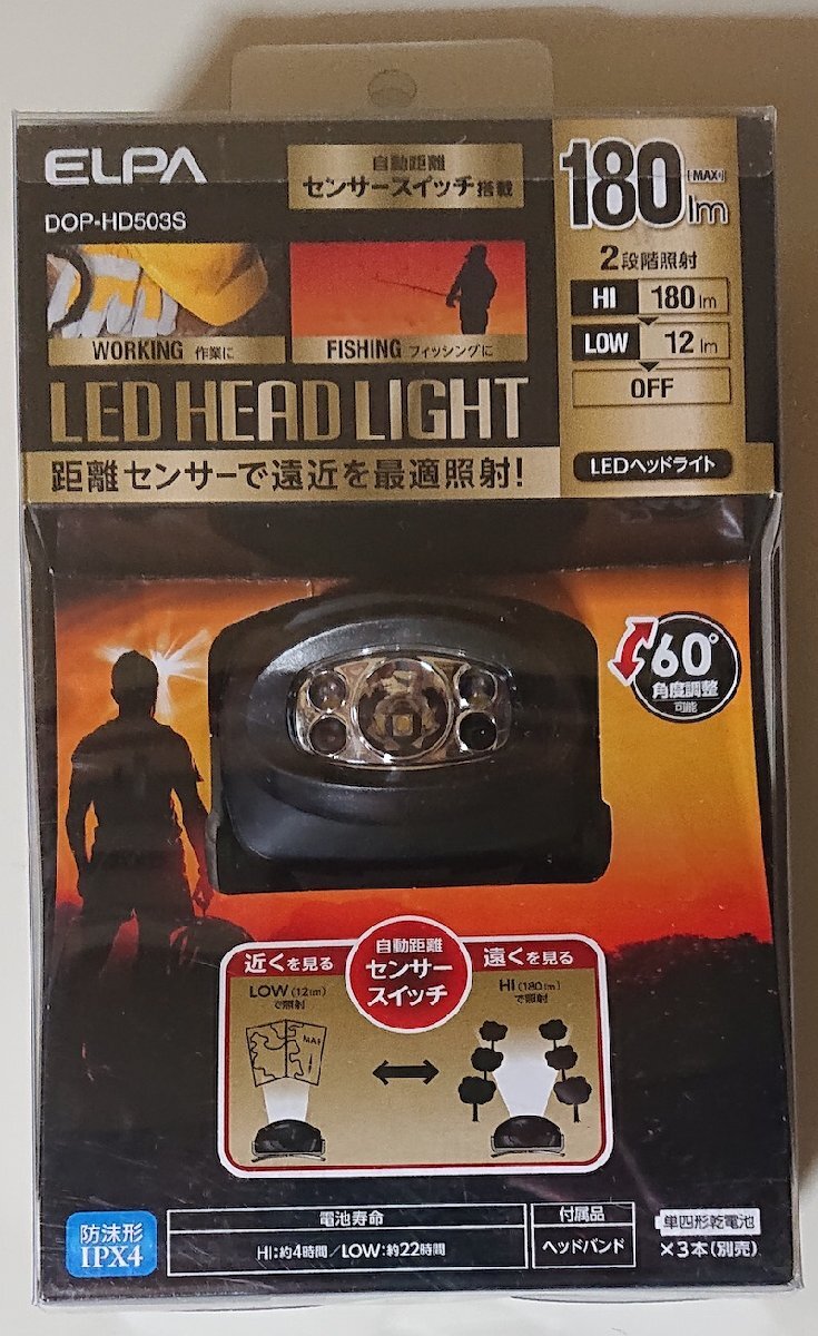 6369 未使用未開封 LEDヘッドライト DOP-HD503S ELPA 朝日電器 LED HEAD LIGHT 乾電池式 防沫形IPX4 最大180lm
