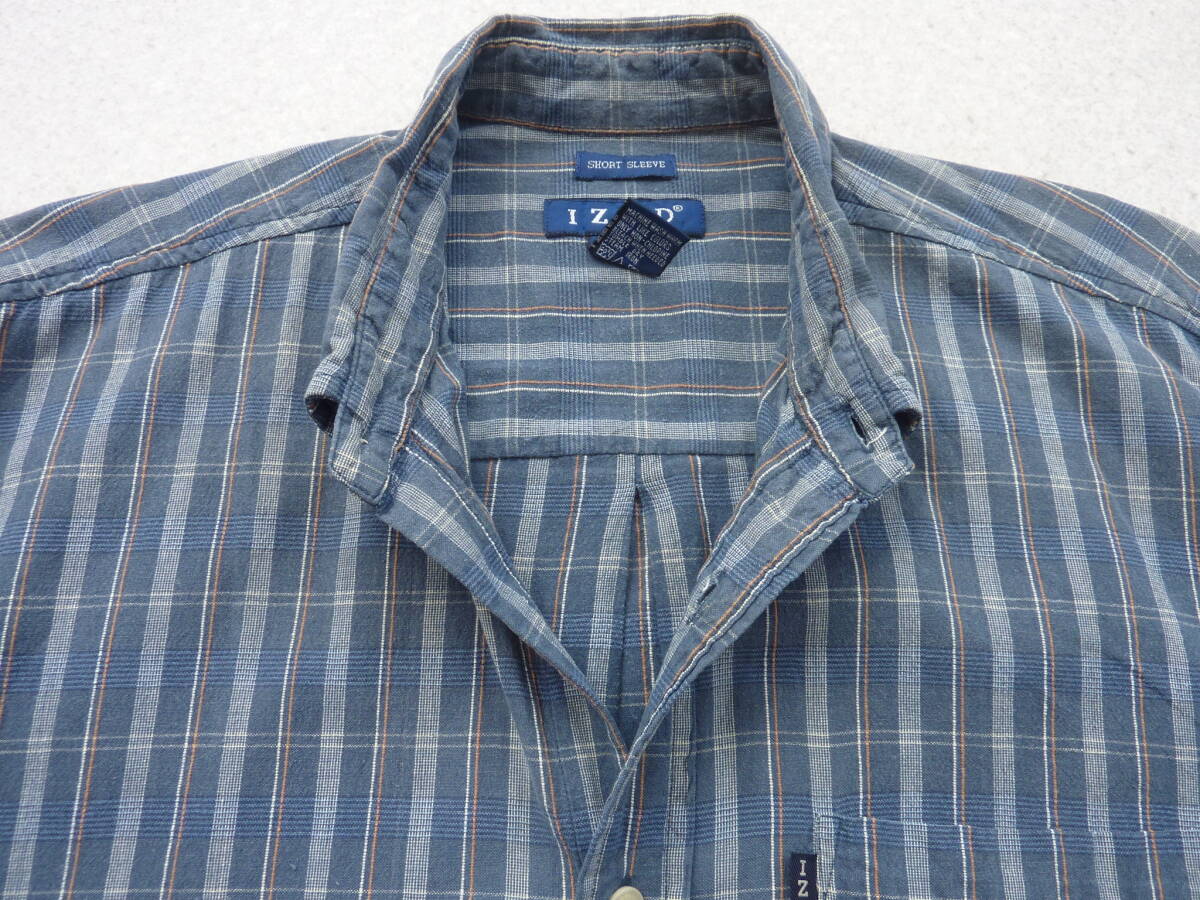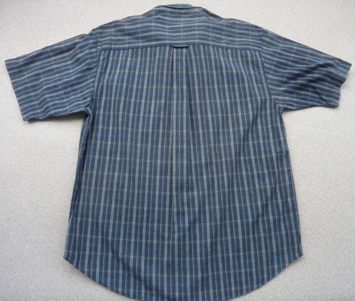 綿100%のブルーベースチェックに織られた生地で、BDに仕立てられた半袖シャツです。
