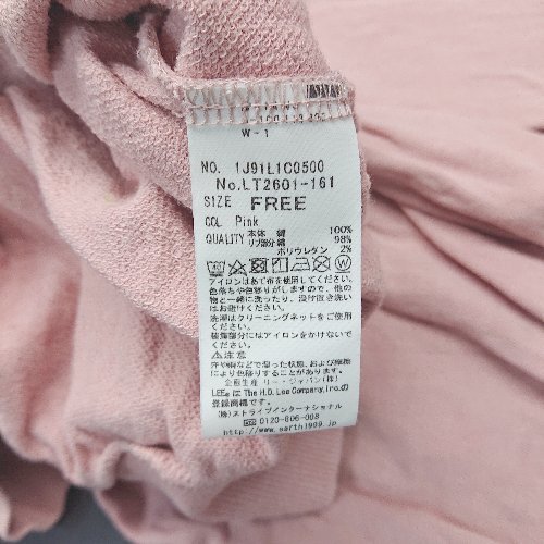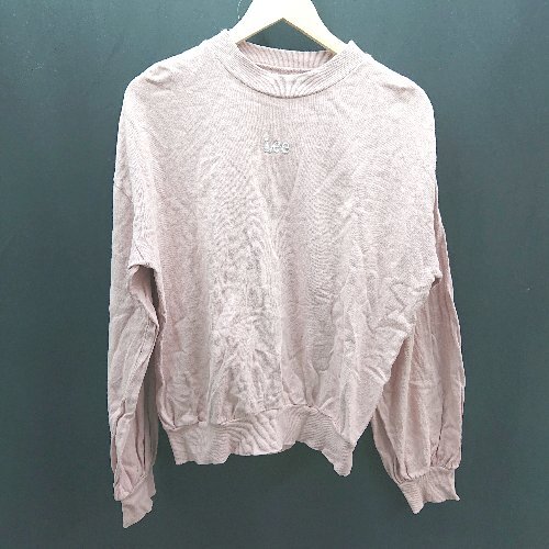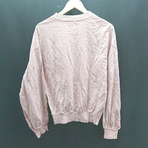 ◇ earth music&ecology オーバーサイズ ボリューム袖 ラウンドネック 長袖 トレーナー サイズF ピンク レディース E