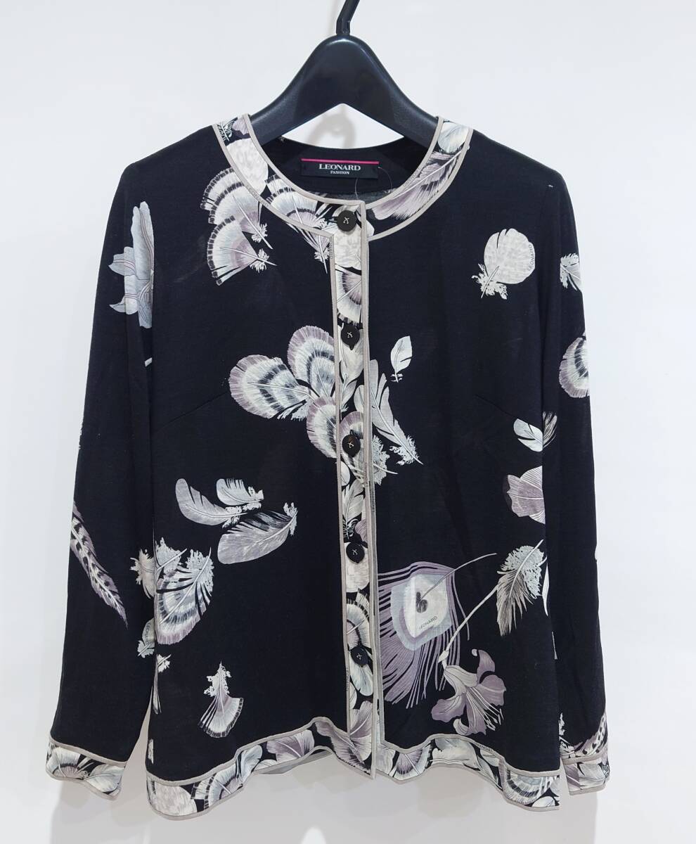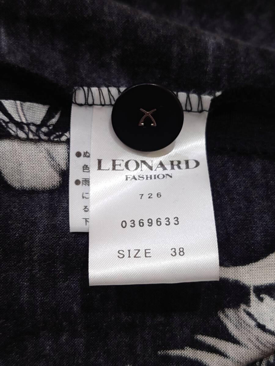 LEONARD レオナール 花柄 カーディガン ブラック × グレー 38 Y-334632