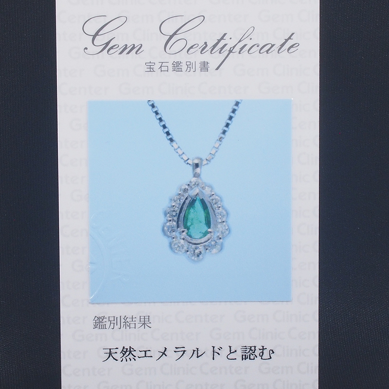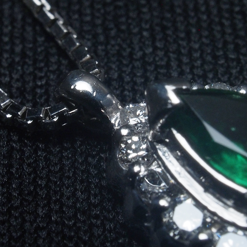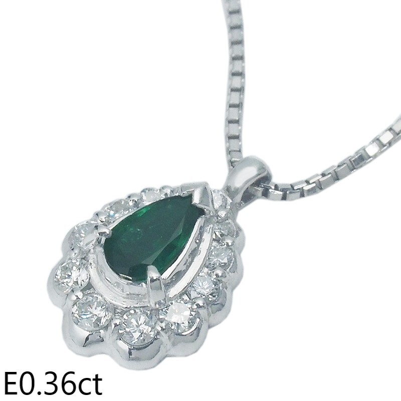 詳細:ノーブランド エメラルド/0.36ct ダイヤ/0.38ct Pt900/Pt850 デザイン ネックレス 鑑別カード付き 仕上済