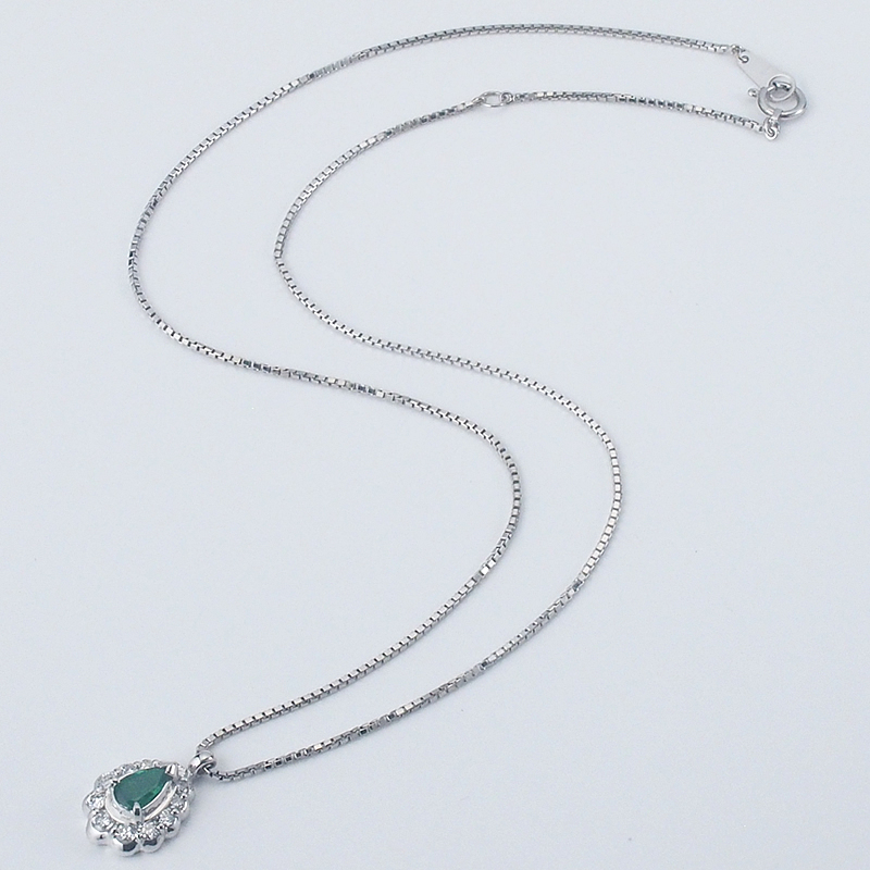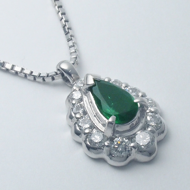 色鮮やかなエメラルドとダイヤモンドの美しいコントラストが表現されている素敵なネックレスです。