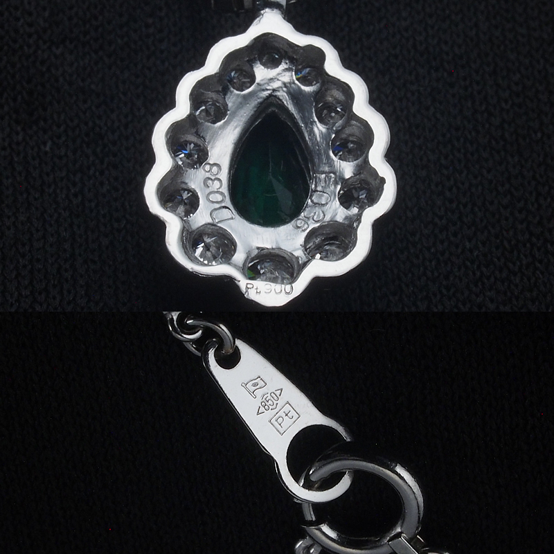 刻印:トップに【Pt900 E036 D038】チェーンに【Pt850 造幣局検定マーク】
