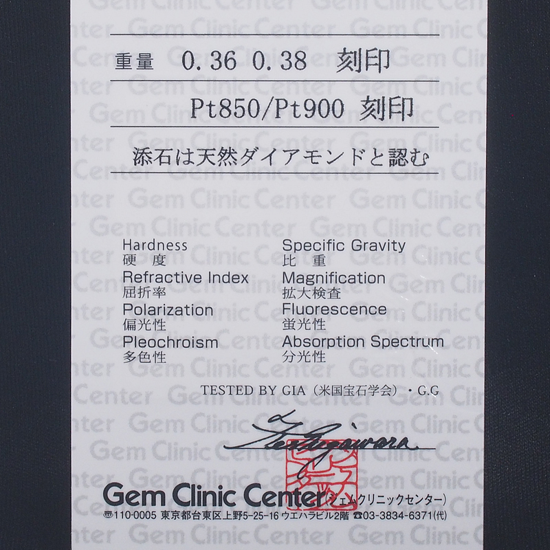 付属品:鑑別カード(ジェムクリニックセンター)