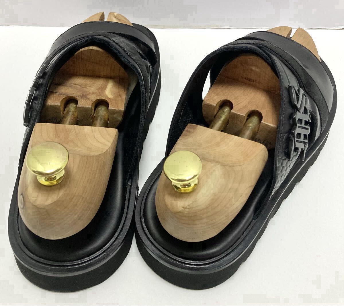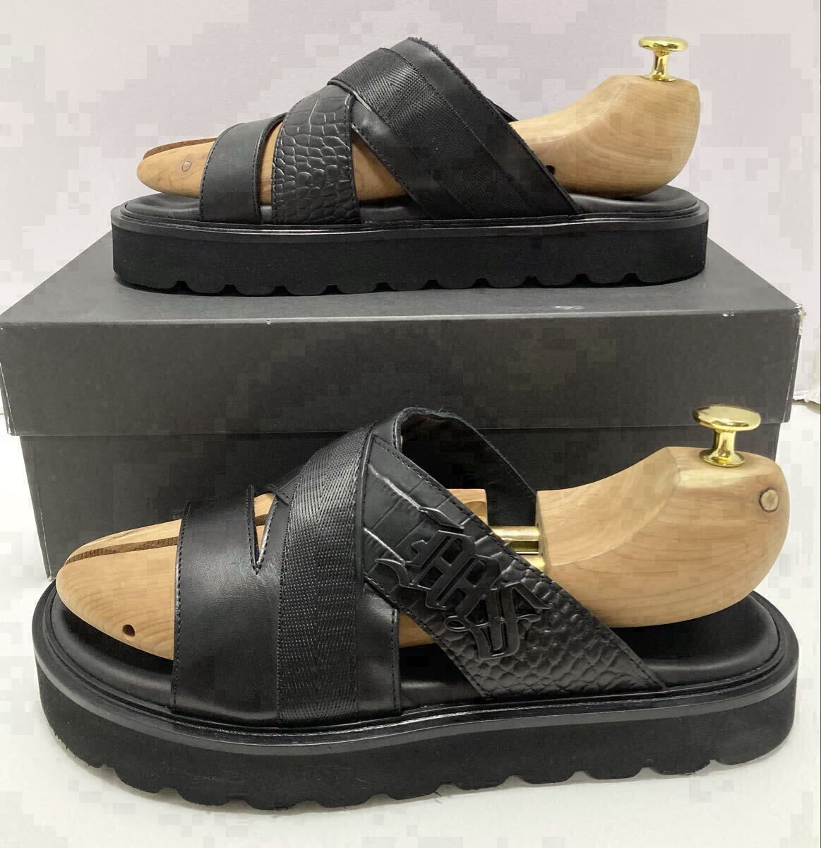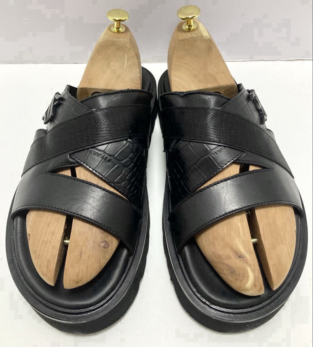 今回出品致しましたのは、“1158-01/SANDALO UOMO CRUST+COCCO NERO”、アッパー部分がクロコダイル型押しレザー × レザー × ナイロンベルトが切り替えられた、オープントゥ・サンダルになります。