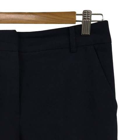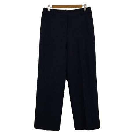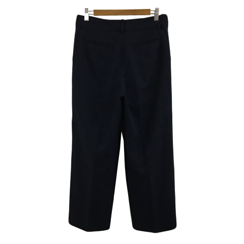 ナチュラルビューティーベーシック パンツ ワイド ストレート ロング ハイウエスト センタ―プレス 無地 M 紺 ネイビー レディース