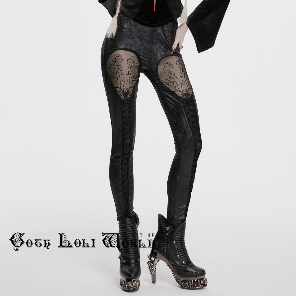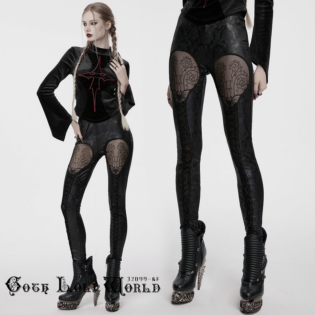 即納 OK-711DDF-BK-L ゴシックワールド レースアップ レギンス ロングパンツ V系 地雷系 ライブ衣装 舞台衣装 ステージ衣装 イベント衣装
