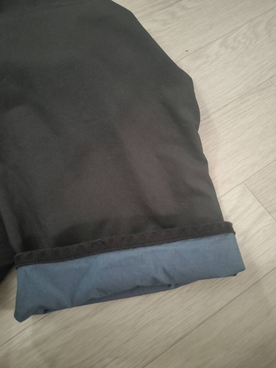 ハリのある生地の2層構造で袖裏を捲ることで別配色の生地が見えるのが