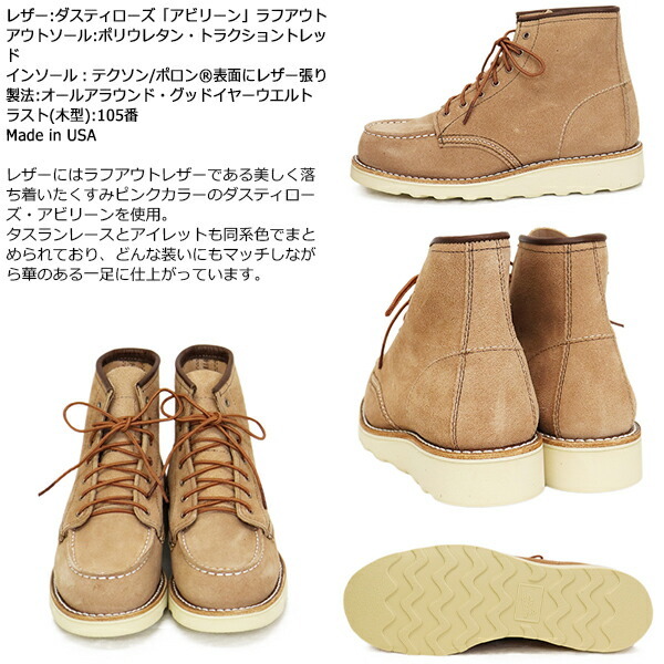 商品名 | REDWING (レッドウィング) 3319 6inch Classic Moc 6インチモックトゥブーツ レディース ダスティローズアビリーンラフアウト US6.5B-約23.5cm |