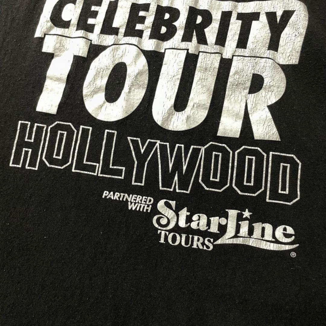 珍品 TMZ Celebrity Tour ハードロックカフェ ツアーTシャツ 希少 y2k 00s Hard Rock Cafe HOLLYWOOD ノースリーブ タンクトップ 玉11340 大きいサイズ ハリウッド スターライン STARLINE BUS 袖カットオフ リメイク